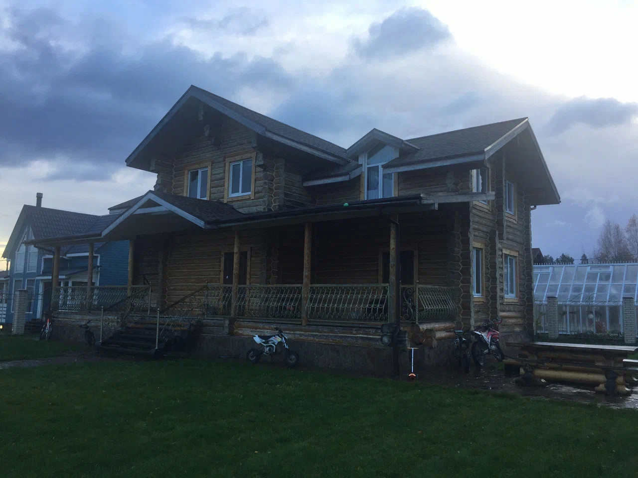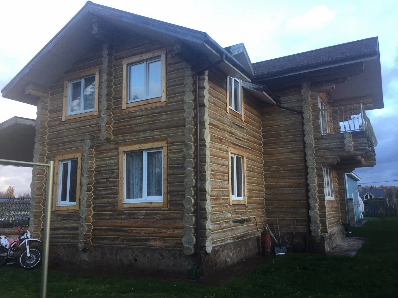 СНТ 8 соток, 10 кВт, биостанция, отопление теплые полы на двух этажах, стеклопакеты, сруб ручная рубка в чашу, фундамент плита 30 см, три туалета, один на первом, два на втором, перекрытия деревянные на втором этаже, 4 спальни, на первом кухня гостиная 70 метров, скважина,мангальная зона перед домом.