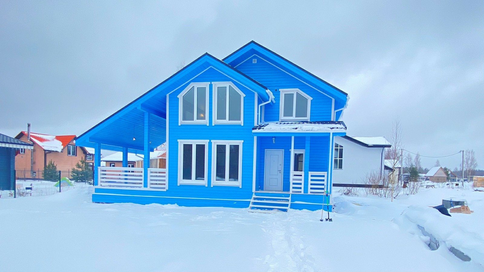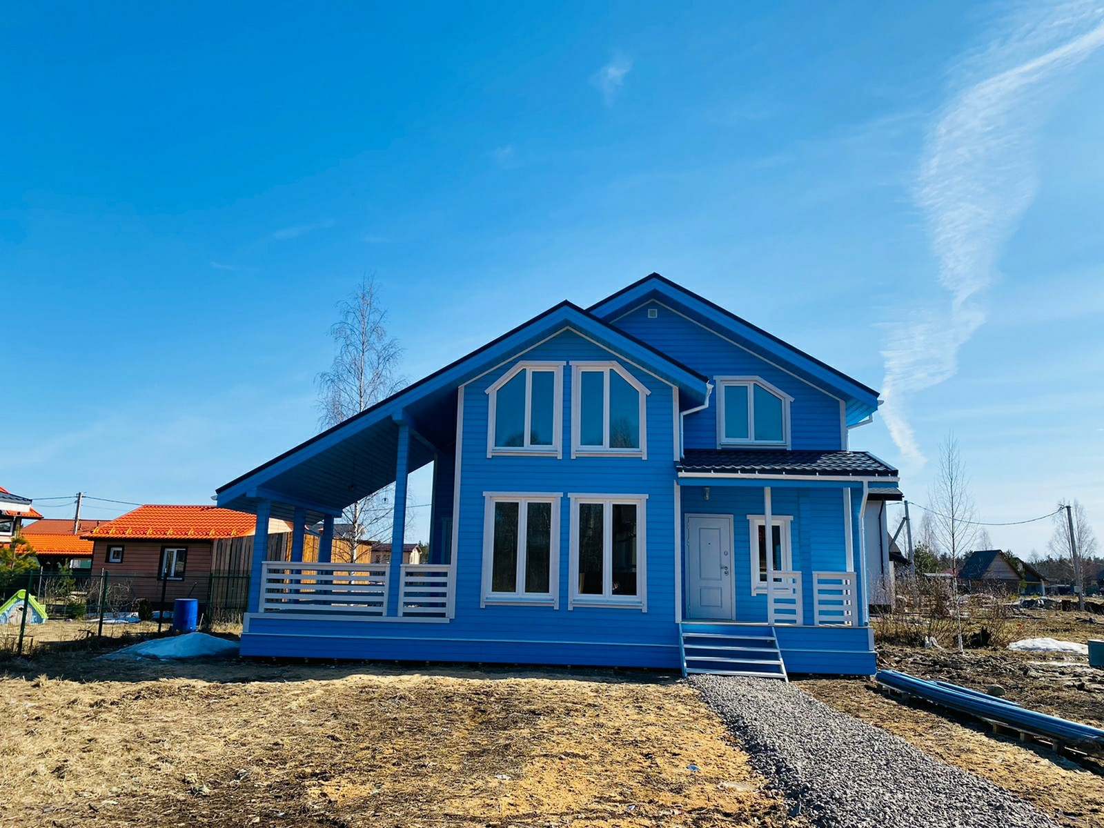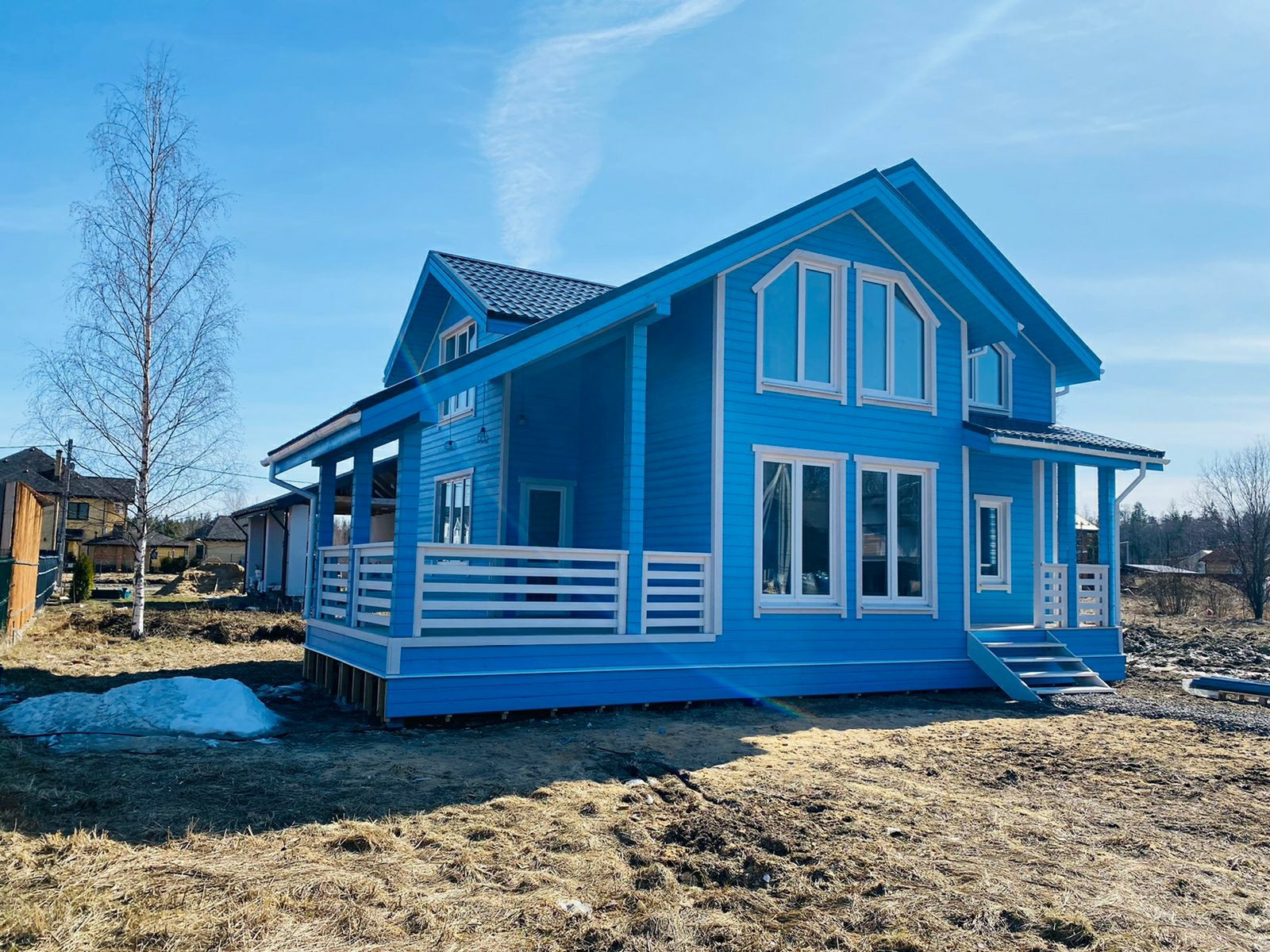 Построен дом по каркасной технологии, фундамент железо-бетонные сваи(можем предоставить проектную документацию), отделка фасада дома имитация бруса(фабричная покраска).