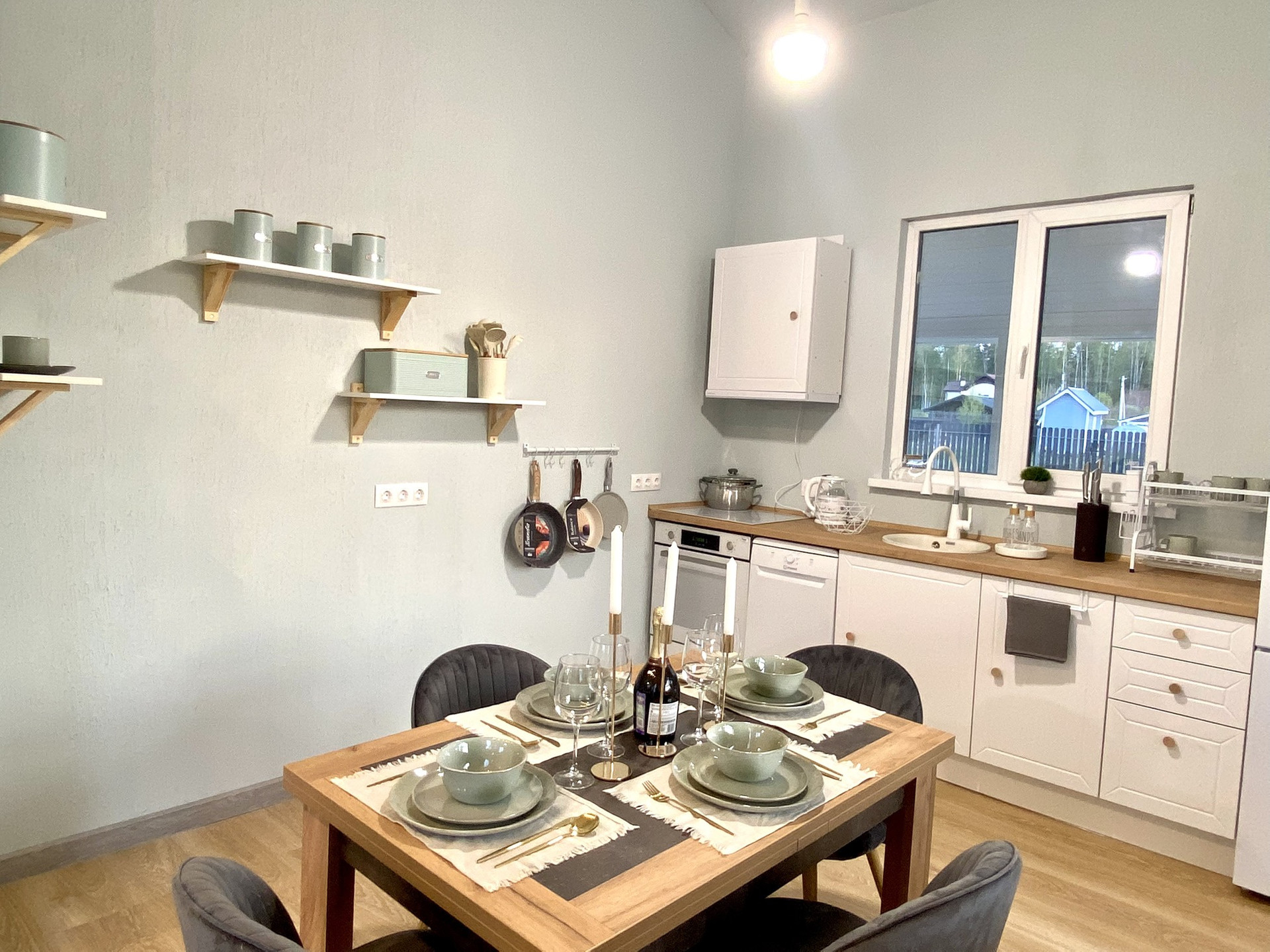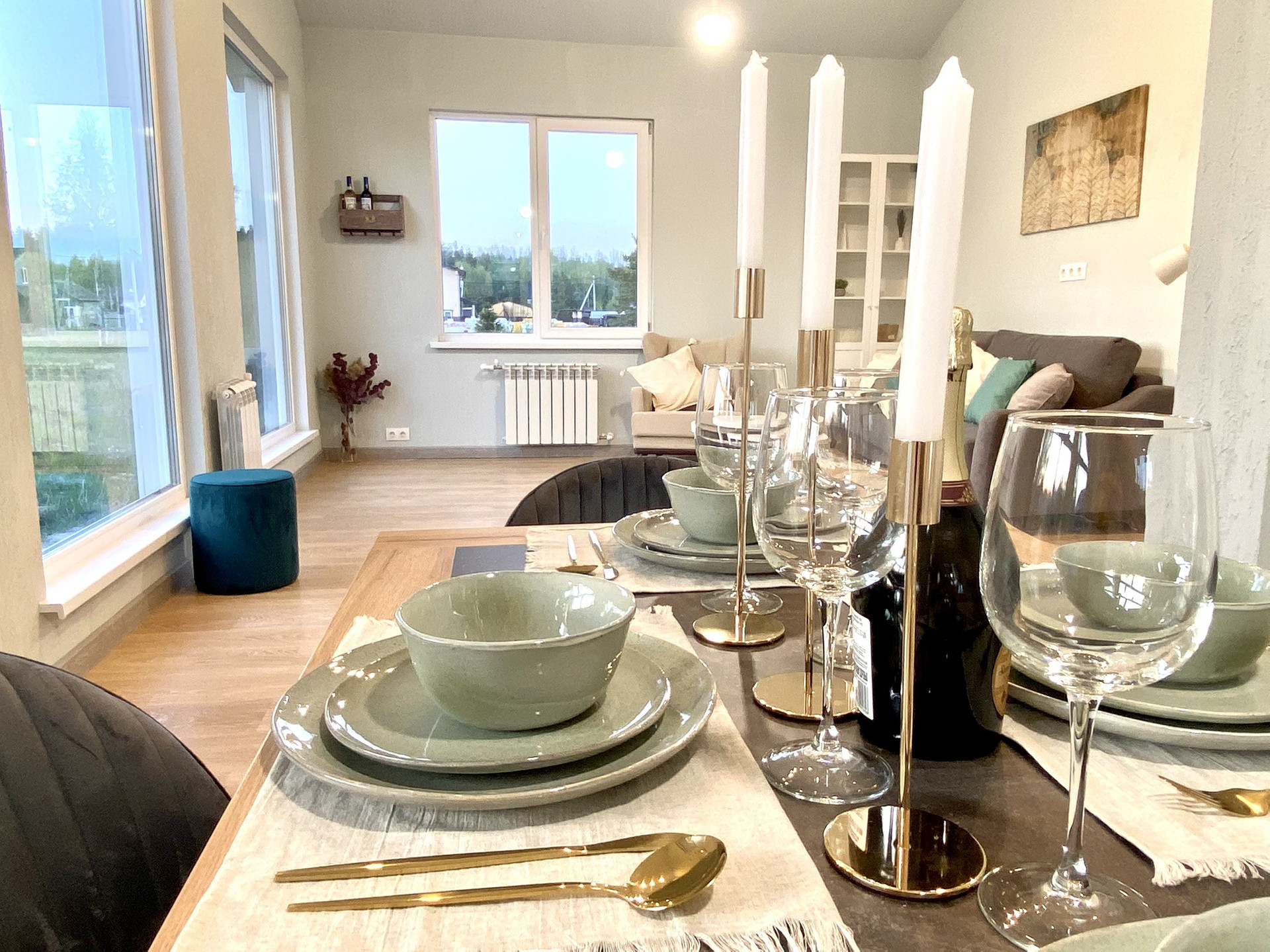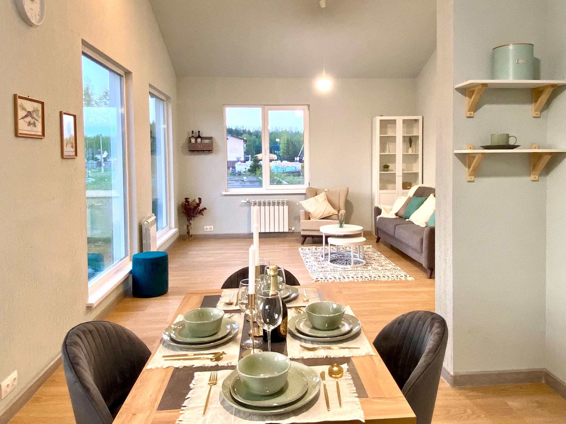 Дом очень светлый и тёплый, панорамные окна.