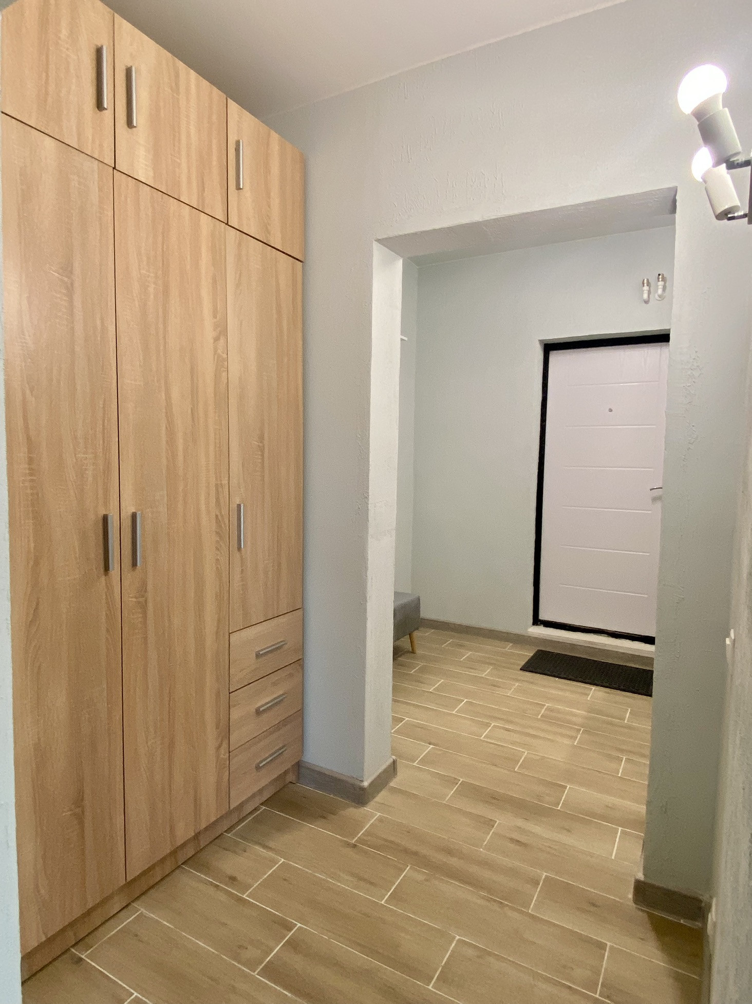 Есть большой чердак и зона под гардеробную.