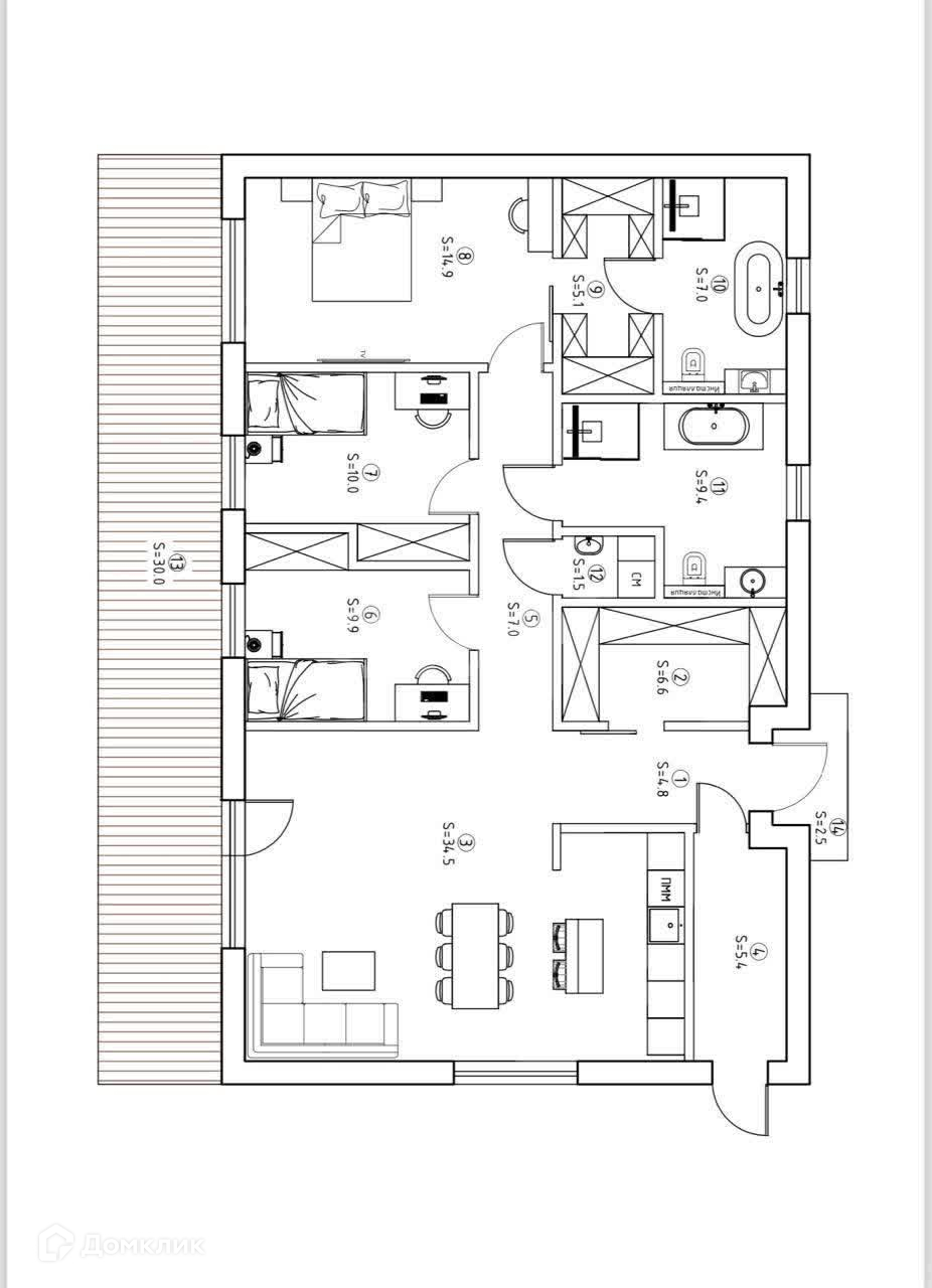 Уникальный дом в современном стиле. Всё новое, полная отделка, техника, мебель, текстиль.