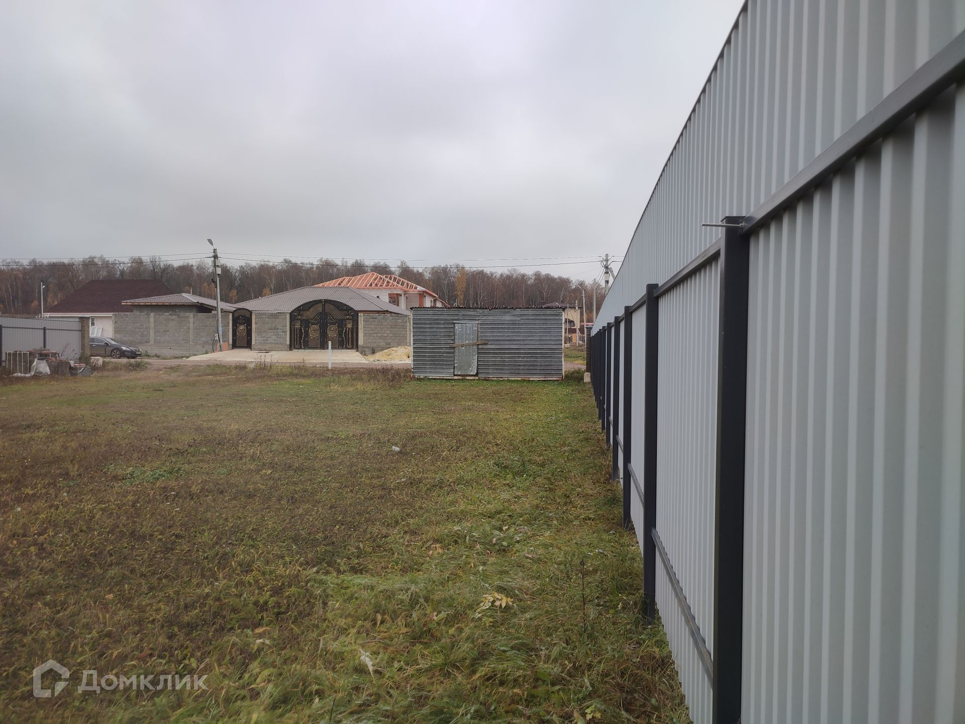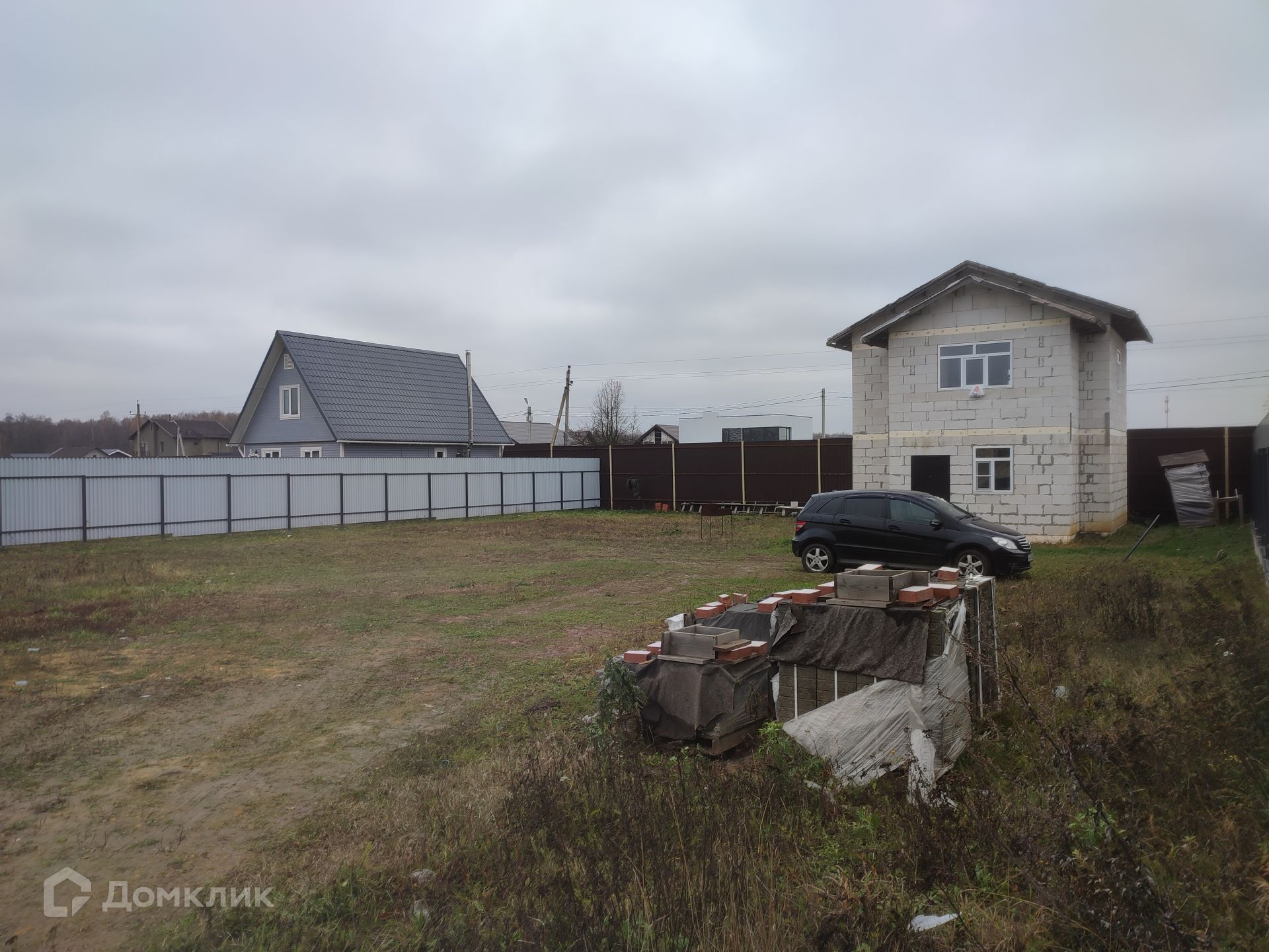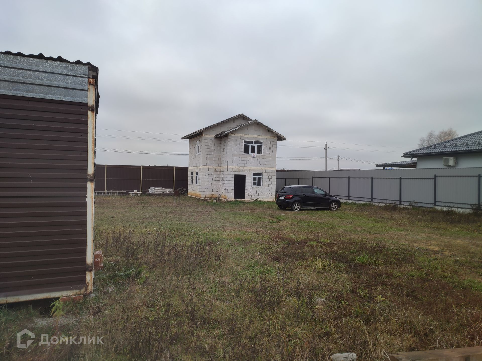 Площадь участка составляет 9 соток, участок правильной квадратной формы, огорожен забором из профнастила по всему периметру, удобный подъезд к дому, твердое покрытие. На участке газон. Также имеется теплая бытовка, которая подойдет для проживания строителей на время ремонта.