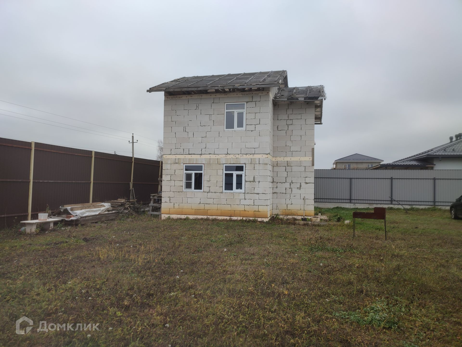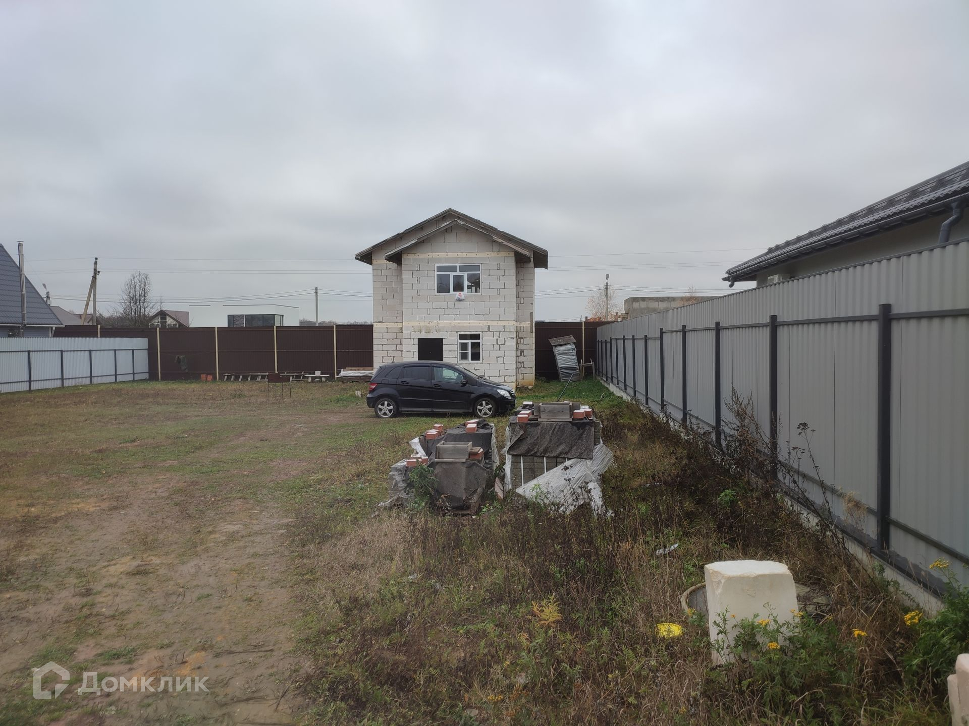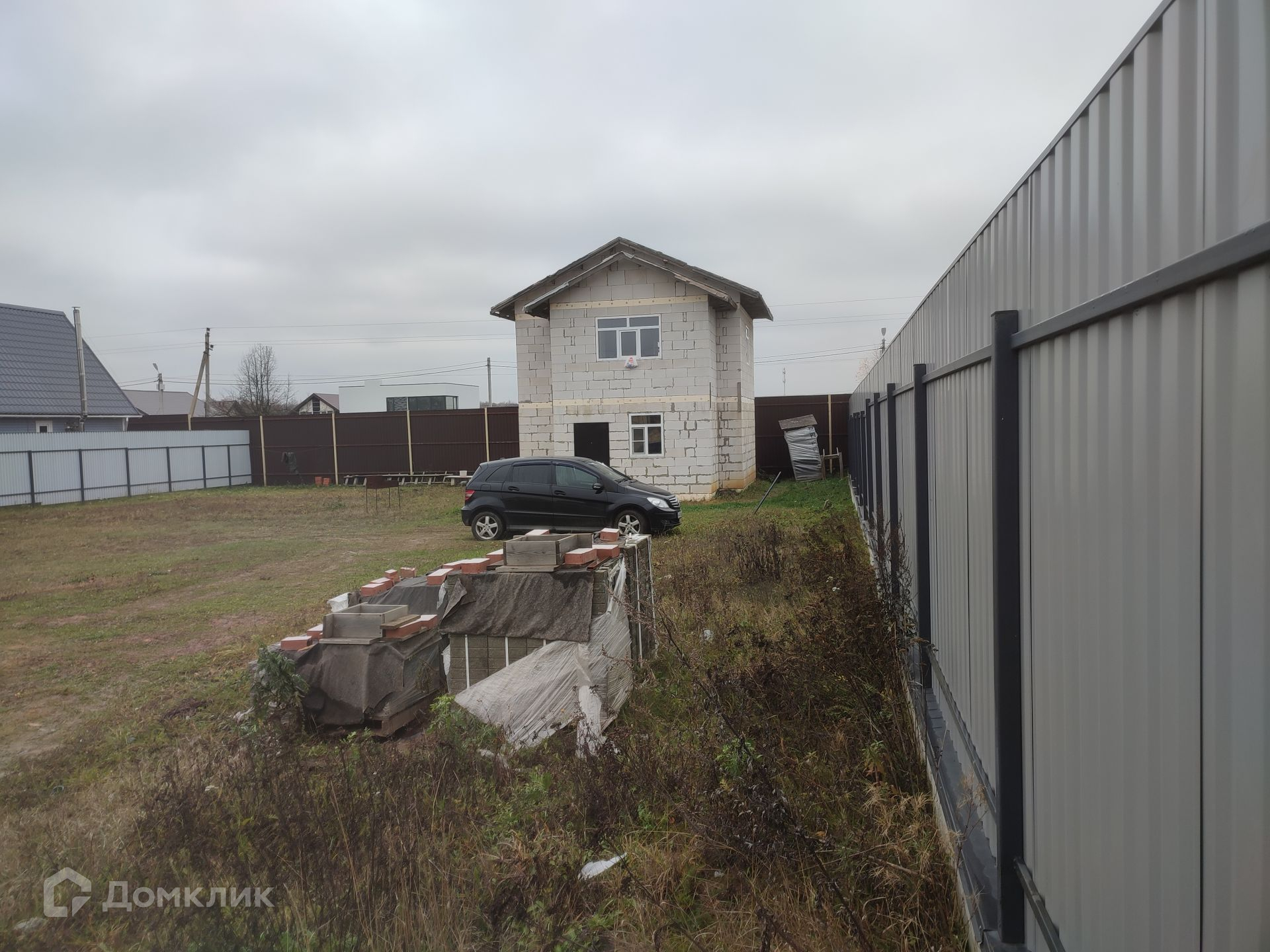 Площадь участка составляет 9 соток, участок правильной квадратной формы, огорожен забором из профнастила по всему периметру, удобный подъезд к дому, твердое покрытие. На участке газон. Также имеется теплая бытовка, которая подойдет для проживания строителей на время ремонта.
