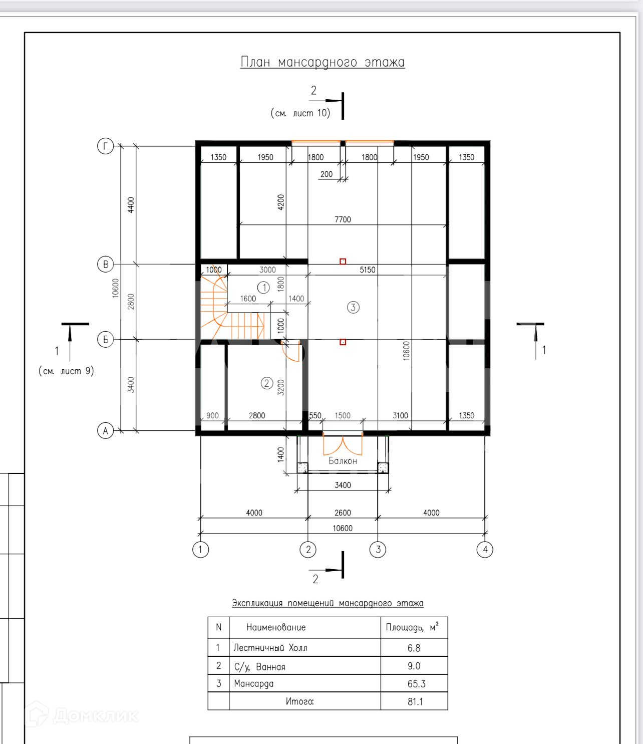 2 этаж.:  3 спальни, 2 с/у.