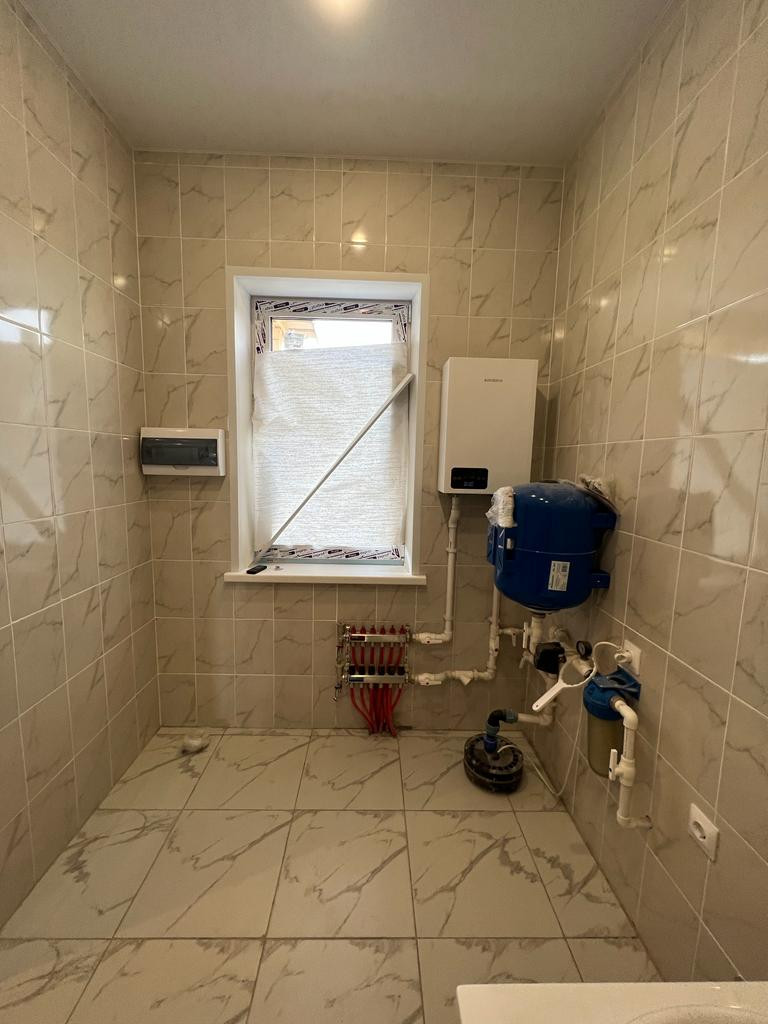 По всему дому установлен водяной теплый пол от электрокотла, очень тепло в зимнее время и экономично