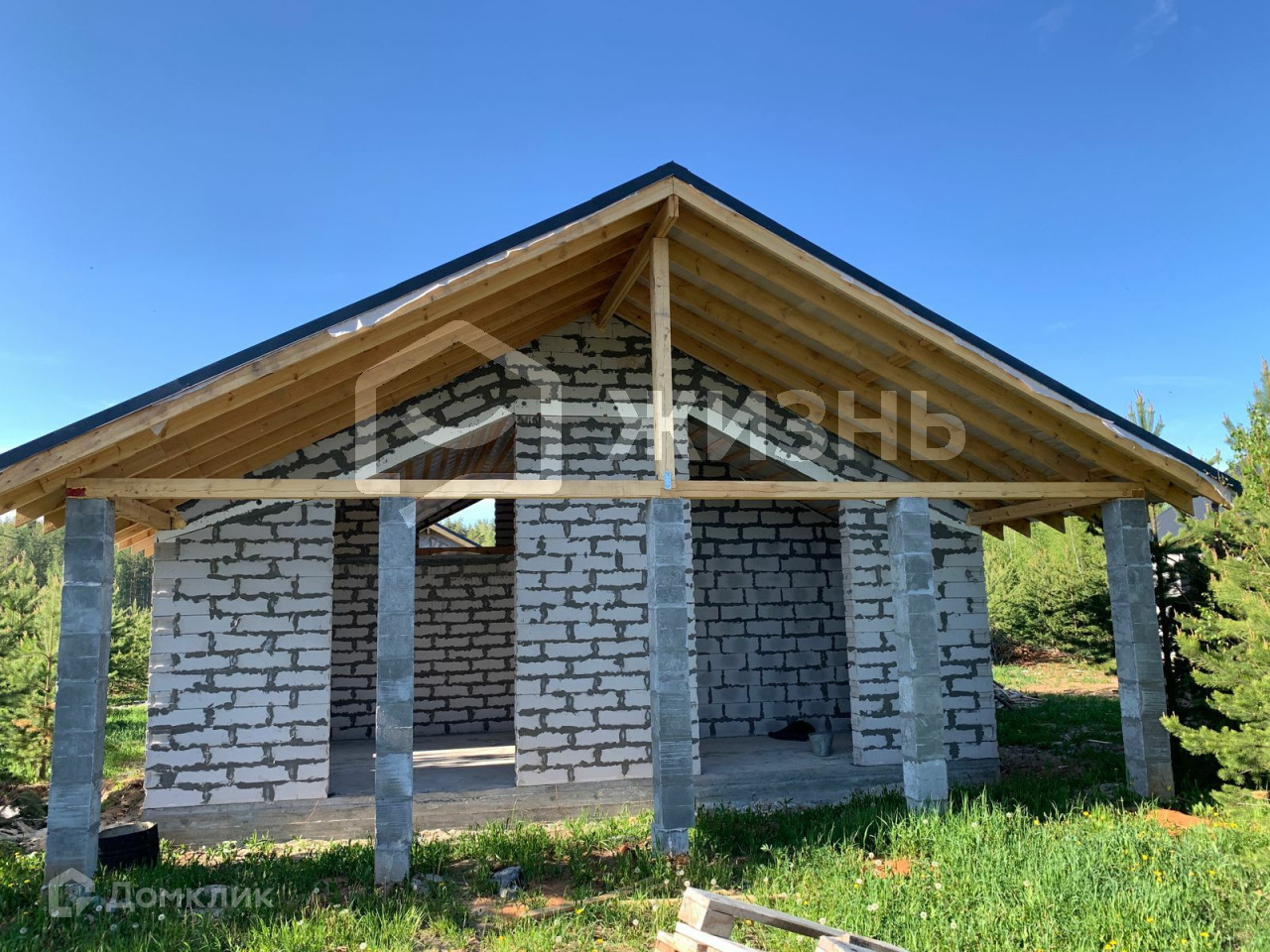 ✓Стены кладка выполнена из газоблока толщиной 300, утепление 100