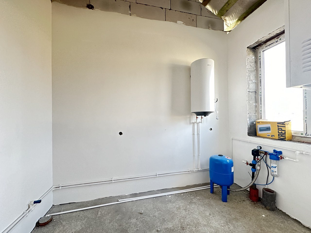 электричество, скважина, канализация, отопление - теплые полы.