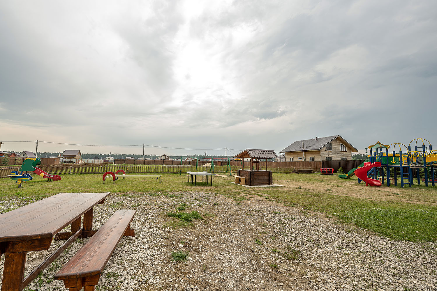 В поселок уже ведется газ, к поселку проложена хорошая новая асфальтированная дорога, внутри поселка – отсыпаны все дороги из щебня, на въезде охрана