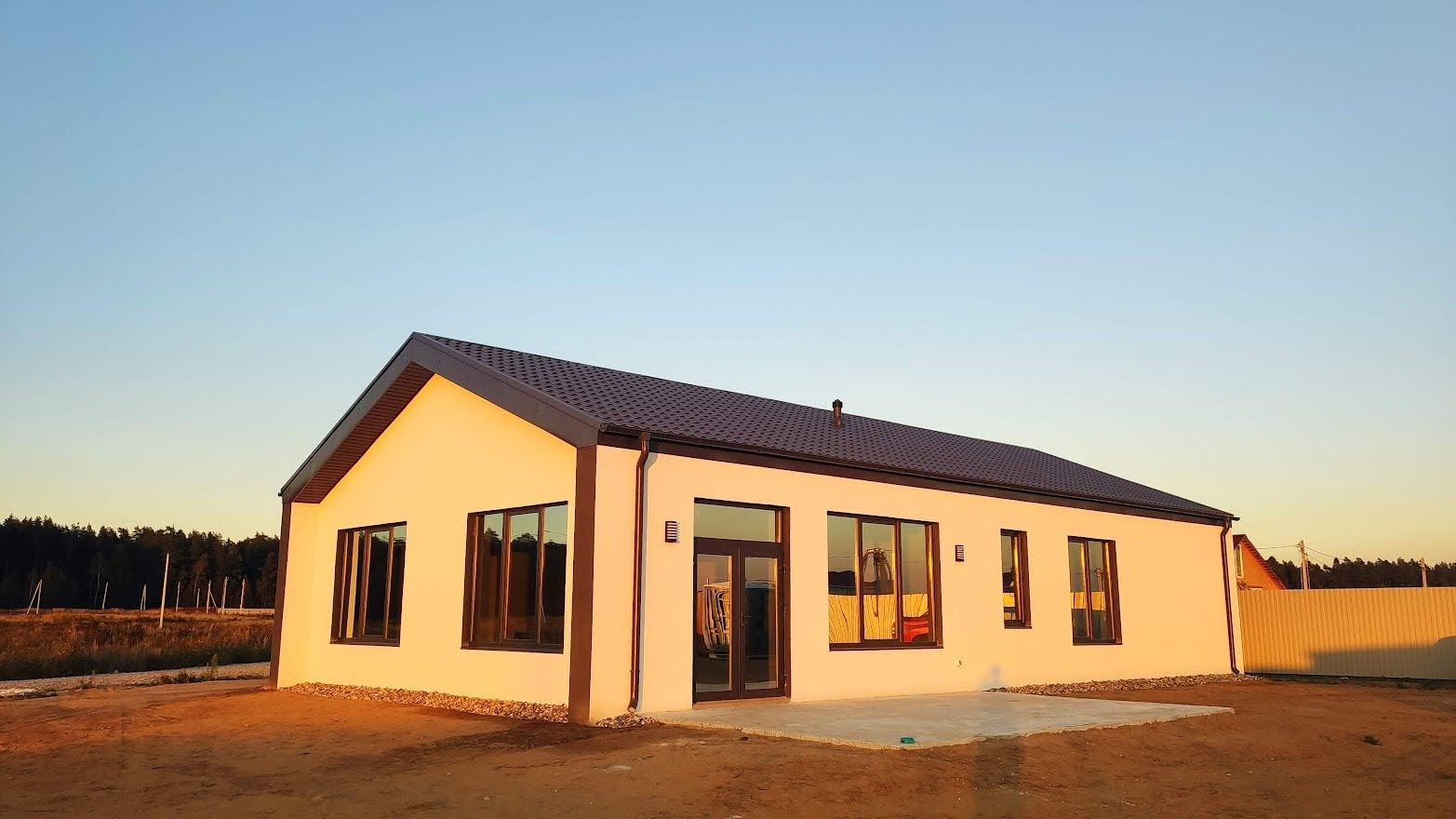 Фундамент монолитный бетон, стены керамзитобетонный блок, утепление стен и фундамента на всю глубину 100 мм, утепление крыши 250 мм, дом современный энергоффективный. Фасад камешковая штукатурка, окрашен финской краской Finncolor. Энергосберегающие панорамные окна, двухкамерные немецкий профиль Gründer, стеклопакеты с напылением для повышенной теплоизоляции. Электричество разведено, установлены розетки, выключатели, стены оштукатурены, можно клеить обои.