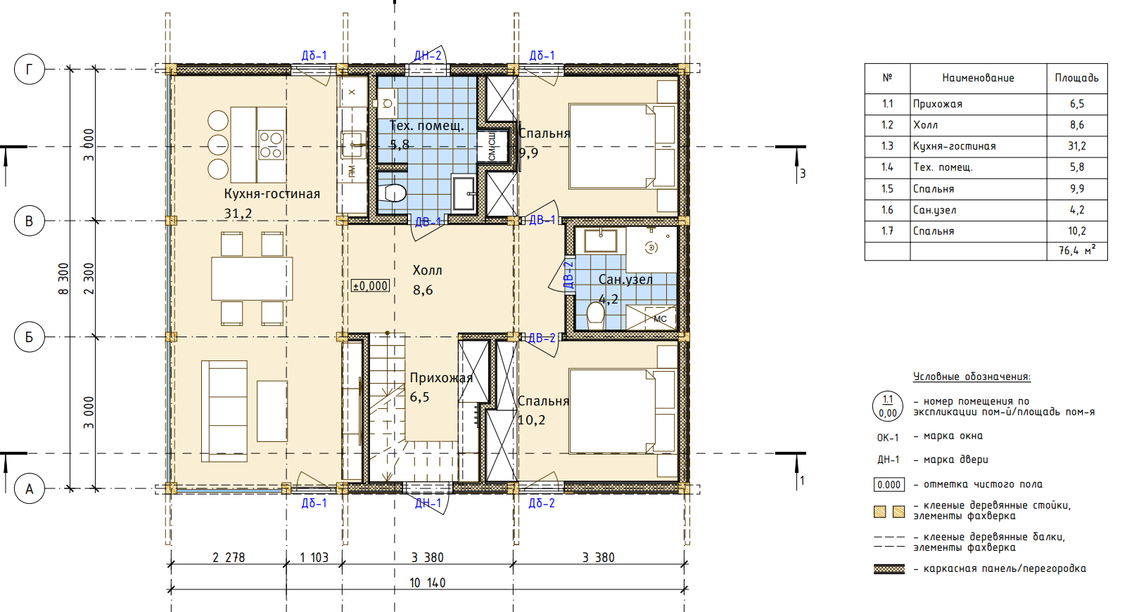Здесь нет ненужной площади, в то же время есть три отдельные спальни, кухня-гостиная с панорамным остеклением, удобный санузел, помещение технического назначения, уютная терраса.