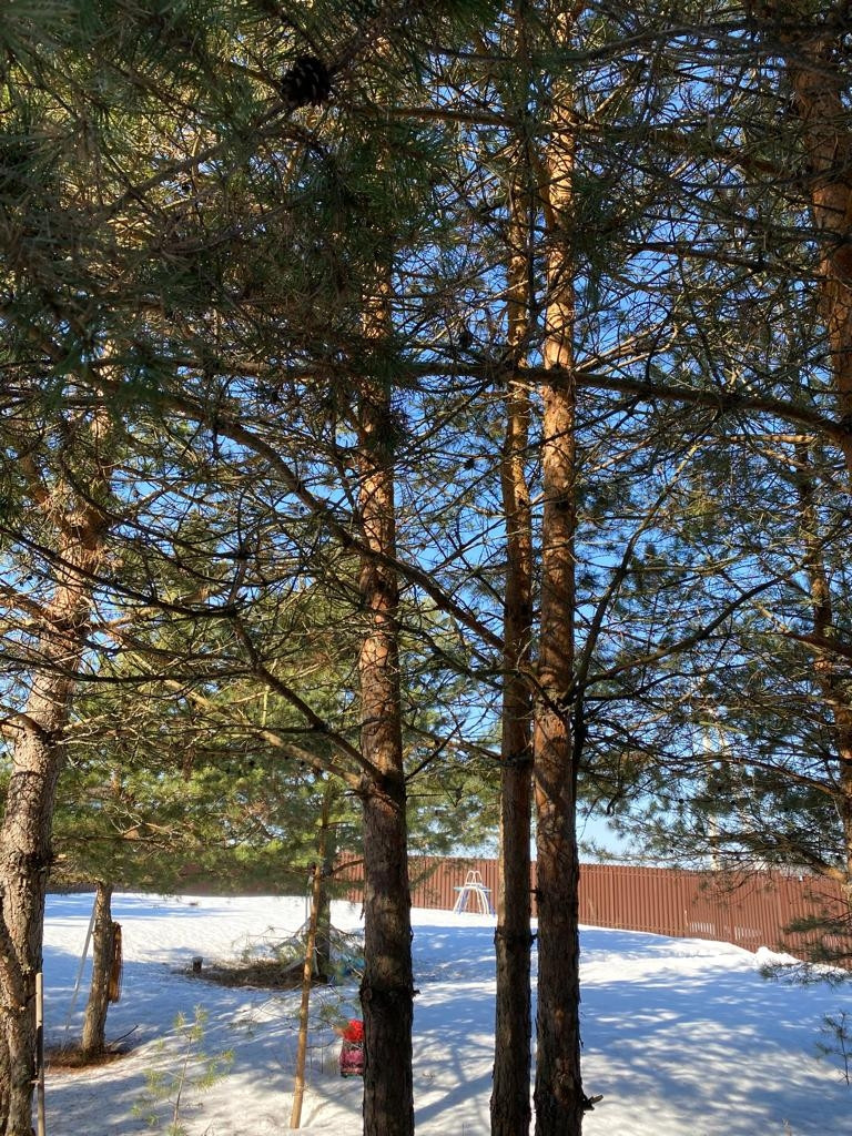 Продаётся сухой участок неправильной формы. На участке более 30 сосен, забор и отказные ворота, артезианская скважина, электричество-15 КВт, подведён интернет, недостроенный дом из пеноблоков - первый этаж, фундамент - лента, есть новый хозблок, засян газон на части участка, так же посажены туи и можевельник, по границе участка проложили газовую трубу, можно получать ТУ на подключение газа. (Госпрограмма)