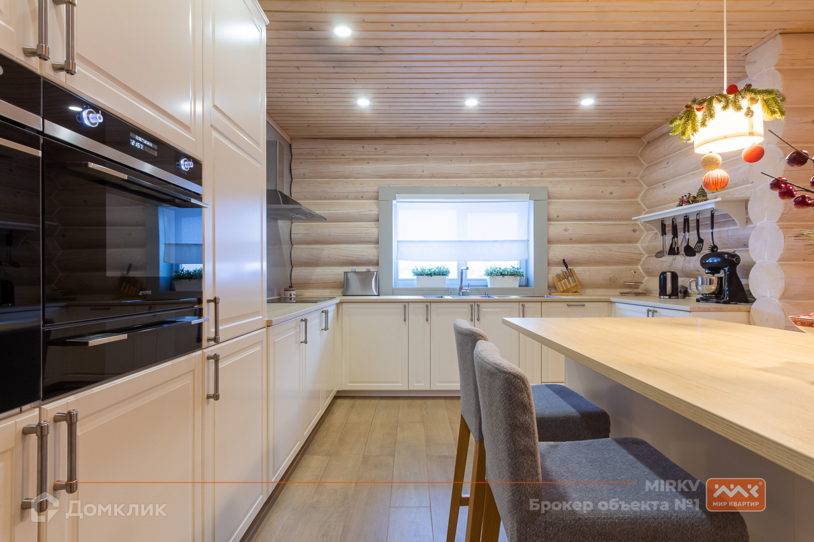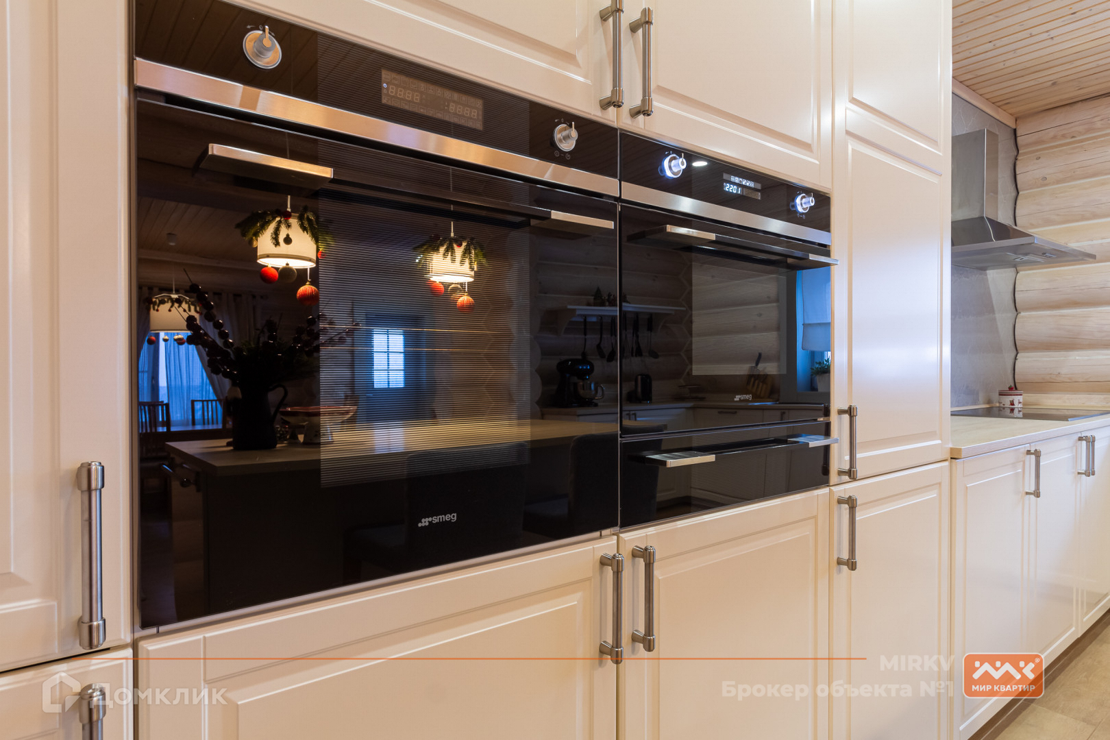 В доме установлена сантехника Villeroy & Boch, встроенная бытовая техника Smeg и Kuppersbusch: микроволновая печь, духовой шкаф, подогрев посуды, посудомоечная машина. Так же в доме остаются два холодильника, стиральная и сушильная машинки. Стеклопакеты деревянные.