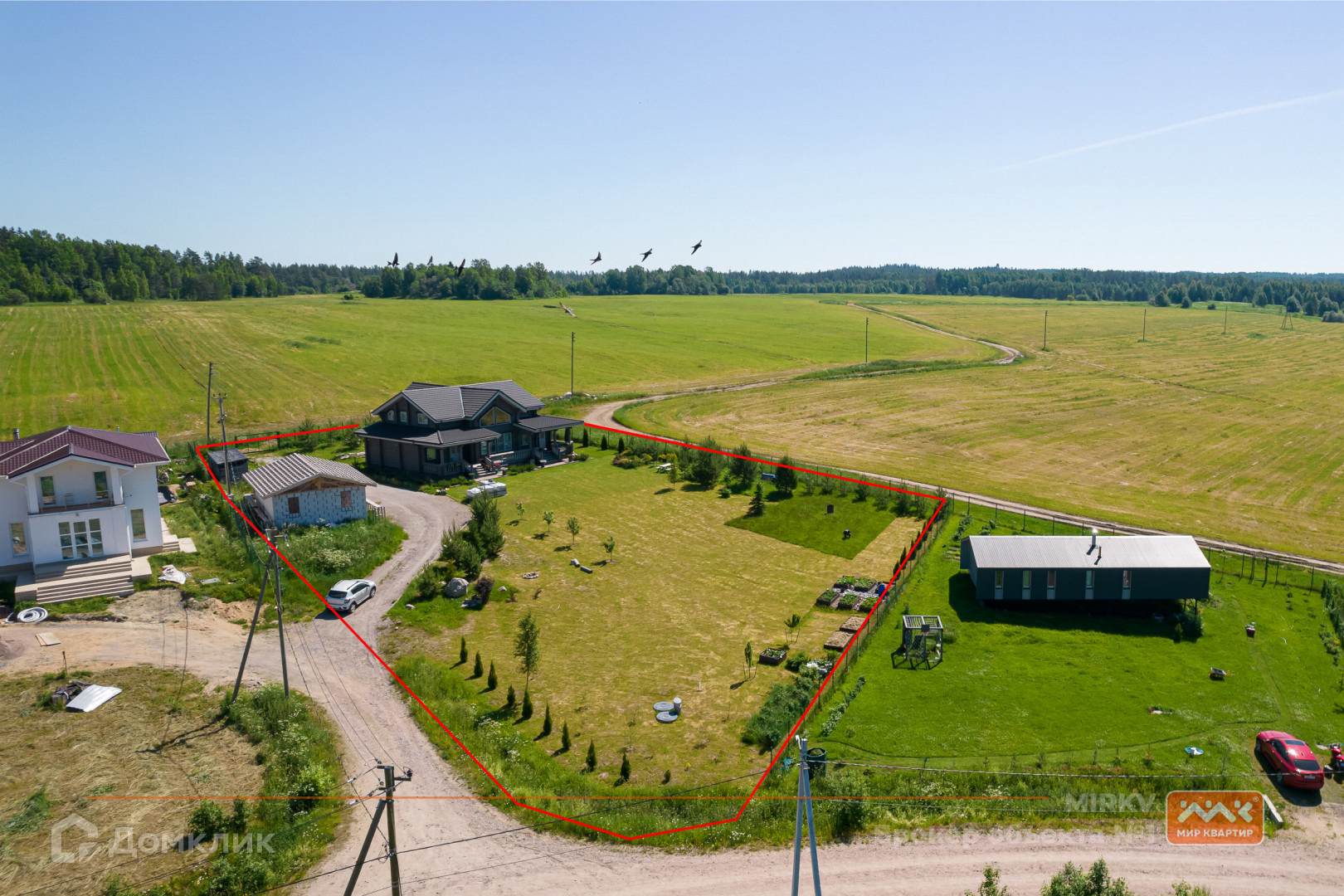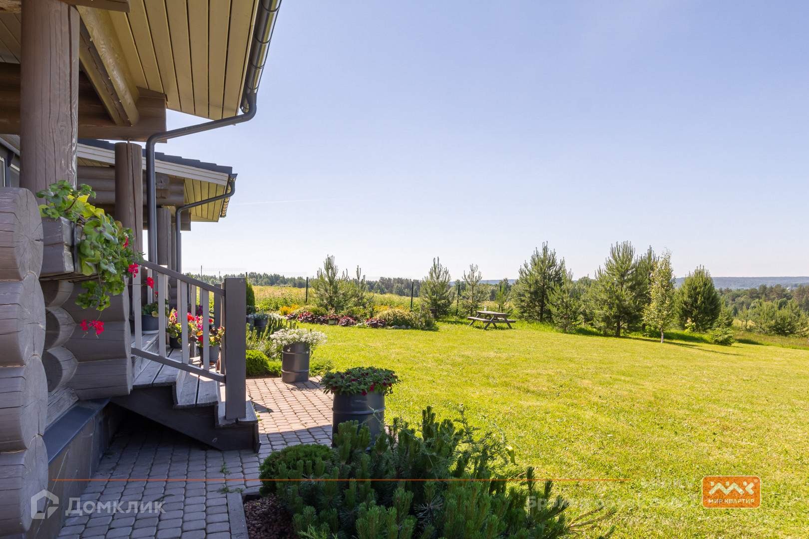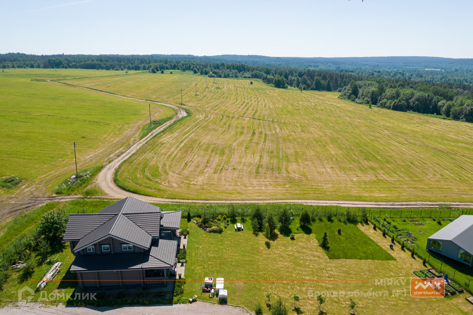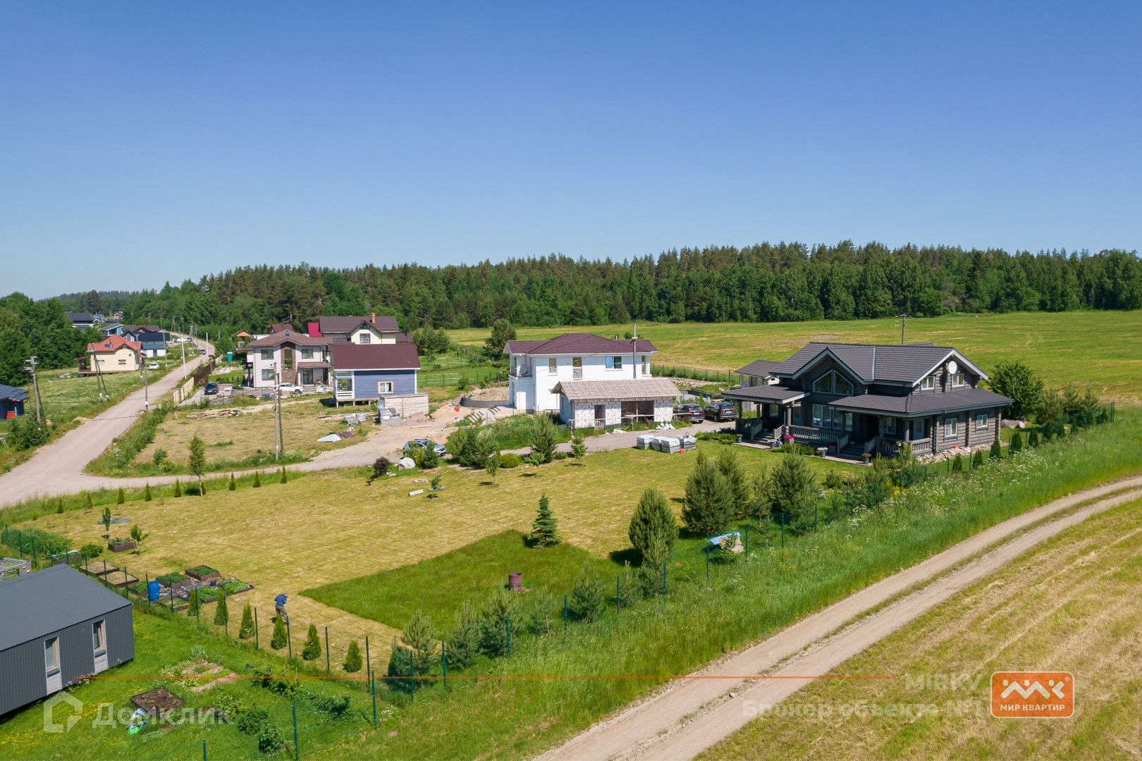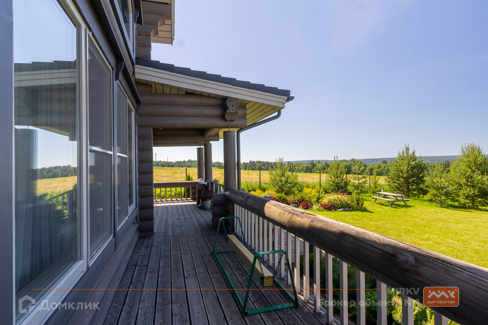 Коттедж в два этажа расположился на участке в 30 соток с газоном, яблонями и елями, построен из бревна, фундамент – железобетонная плита, крыша - натуральная черепица Braas. Участок сухой, так как расположен на самой верхней части посёлка. Так же расположение дома даёт ощущение уединения, так как в окнах вы увидите бескрайнее небо, поля и леса, что делает это предложение уникальным!