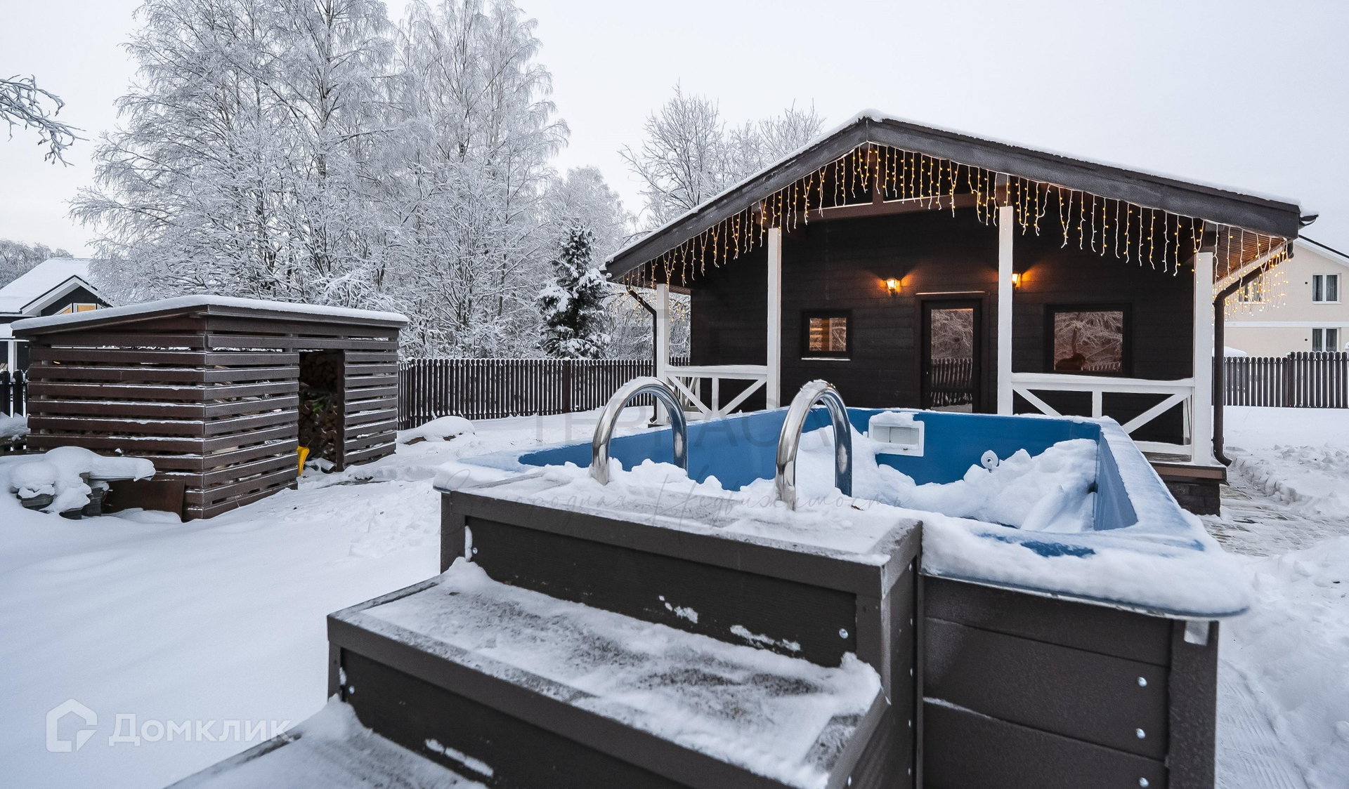 Отдельно на участке построены русская баня с жаркой парной, большой душевой и комнатой отдыха, а также дровеник. Поставлен бассейн.
