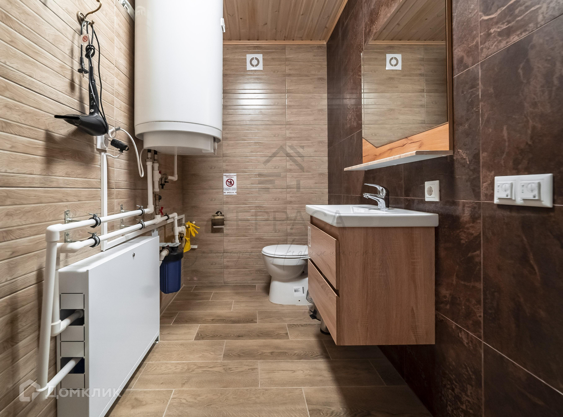 1 этаж – просторная кухня-гостиная с выходом на большую террасу, изолированная комната, прихожая, котельная, с/у.