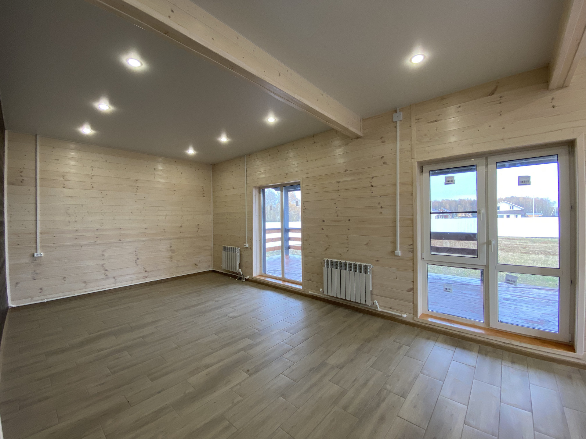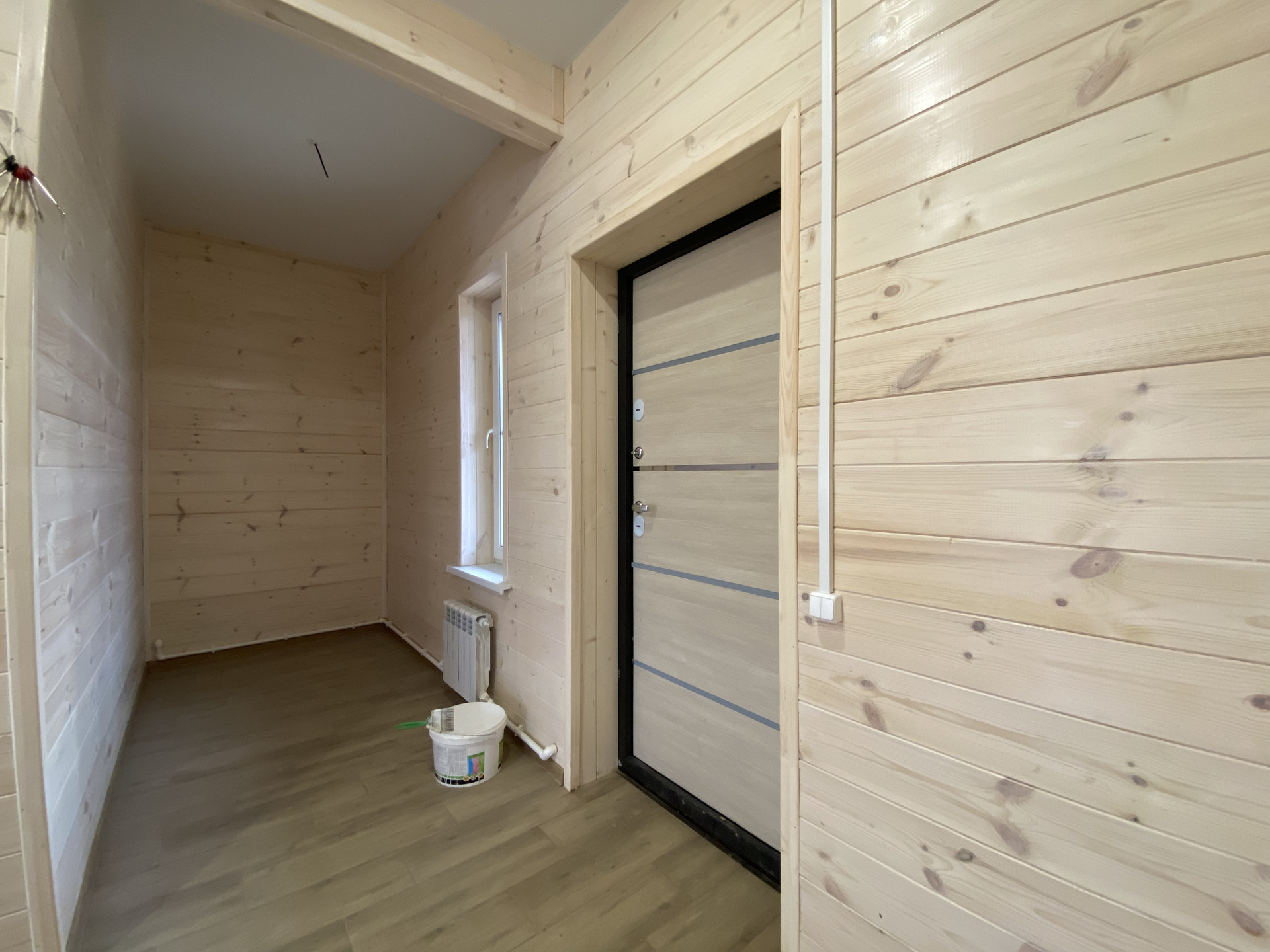 Oбщая плoщaдь - 170 кв.м.; Фундамент - монолитная плита, с тёплым водяным полом по всему дому; Мaтepиaл дома брус сечением - 150х100; Утепление дома - стены 100 мм; пол, потолки, крыша - 200 мм.; Внешняя и внутренняя отделка дома - стены обработанная имитация бруса; высокие потолки; окна - двухкамерные стеклопакеты; кровля - металлочерепица.