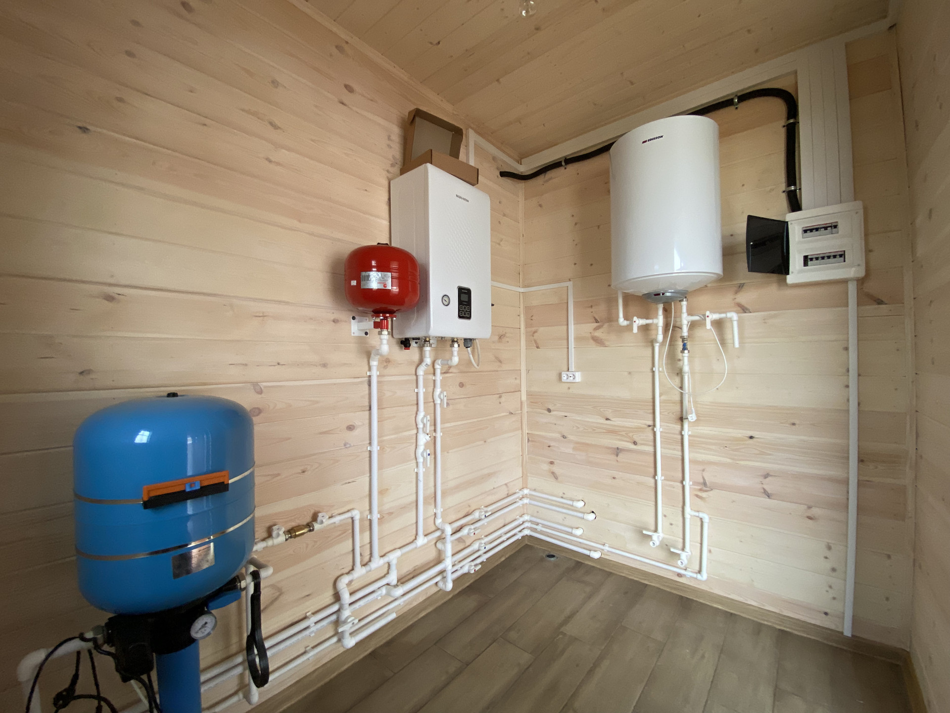 Магистральный газ; Электричество - 5 кВт; Водоснабжение - централизованное; Канализация - септик; Установлена сантехника в двух с/у (1: душевая кабина, унитаз,раковина; 2: унитаз, раковина); Отопление - газовый котел, по дому разведены батареи с антифризом и водяной тёплый пол; Интернет - оптоволокно.