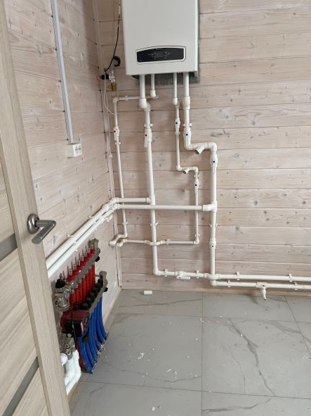 Загородный дом построен из  бруса ,общая площадь 185  кв .м. Все коммуникации, в т ч магистральный газ . Дорогой отопительный котел  с программным управлением. Водоснабжение - глубинная скважина(центральный водопровод), дорогие фильтры очистки воды. Канализация – септик . Охрана.