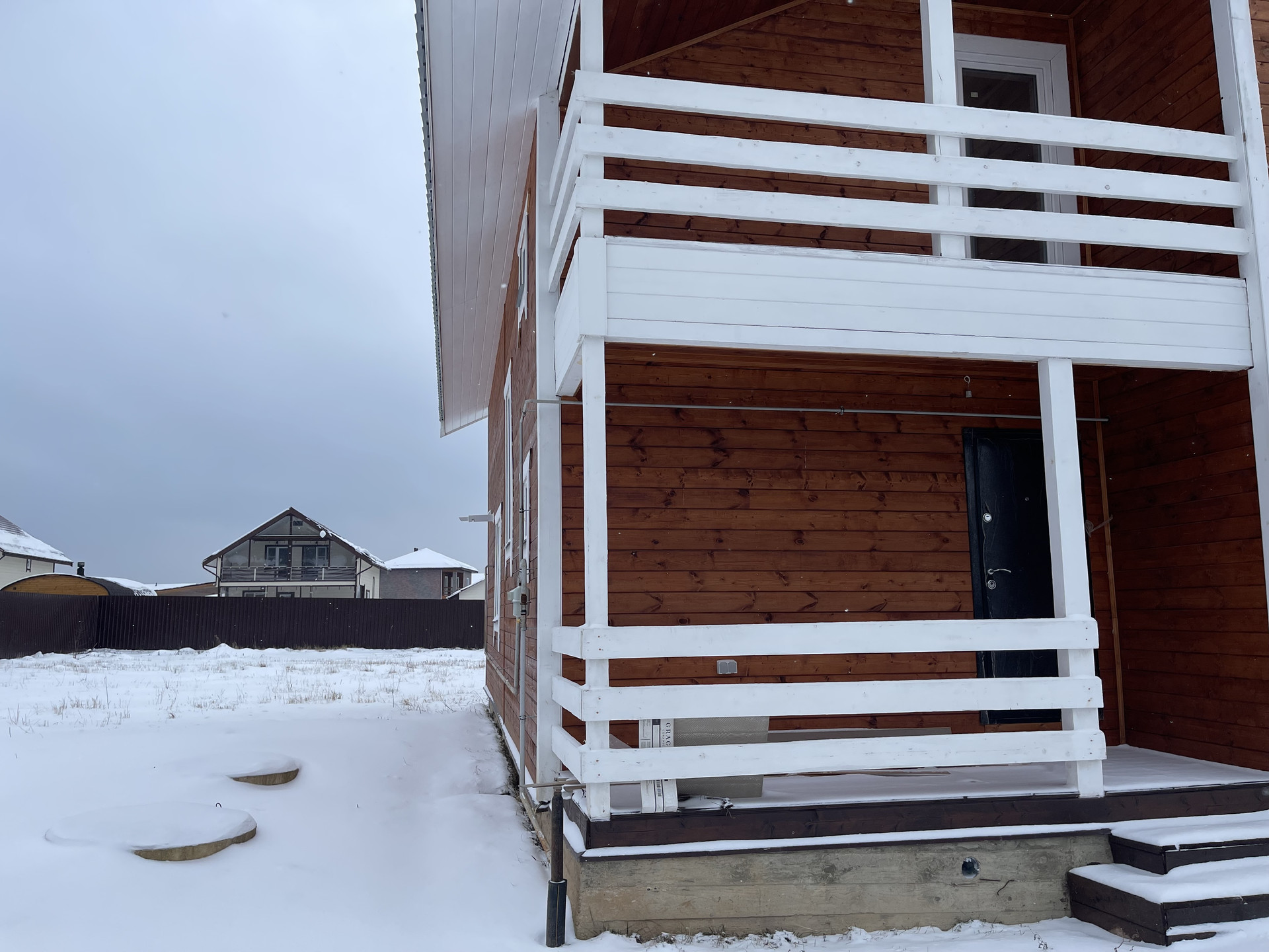 Дом в охраняемом  обжитом поселке  рядом с городом  (вся инфраструктура), но в то же время вдали от суеты – река, лес где растут грибы и ягоды, и лугом, где гуляют лошадки (прекрасное зрелище, особенно на закате). Здесь в деревне, можно купить домашнее молоко.
