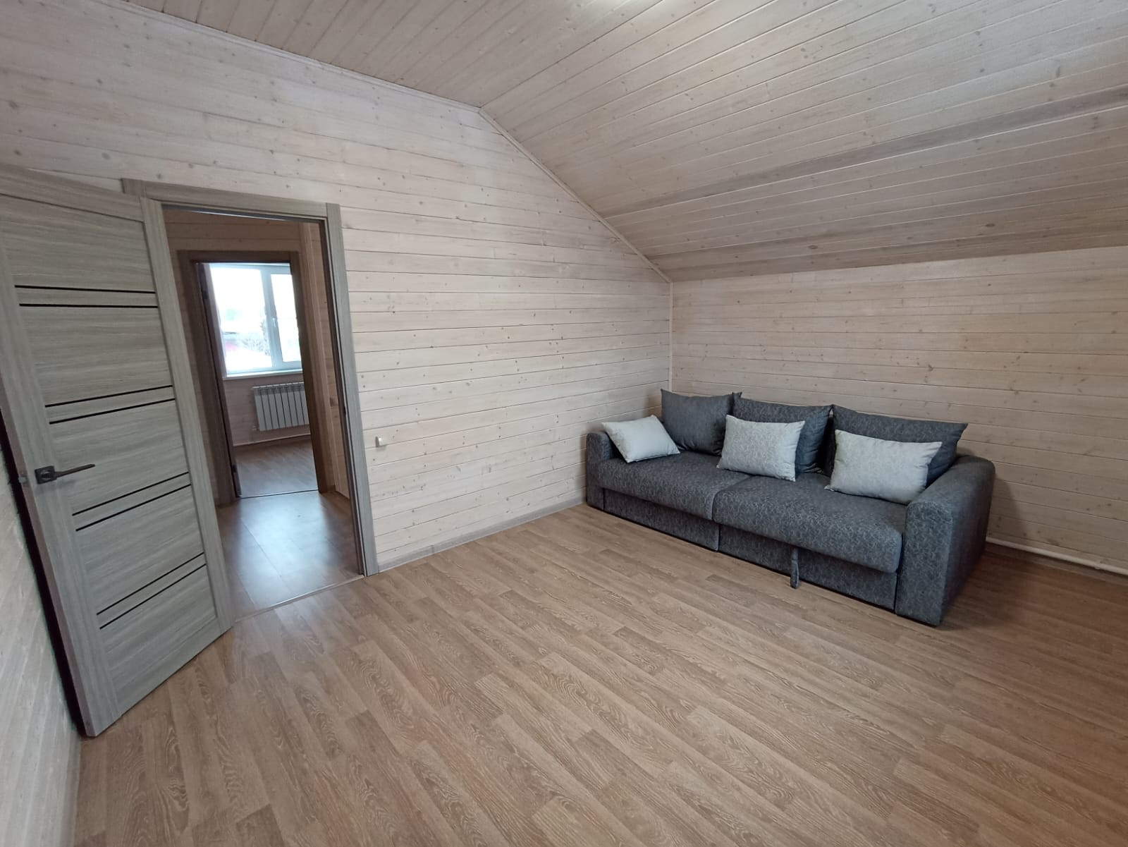 Этаж 1: Кухня-гостиная, спальня, с/у, котельная, крытая веранда. Много естественного света.