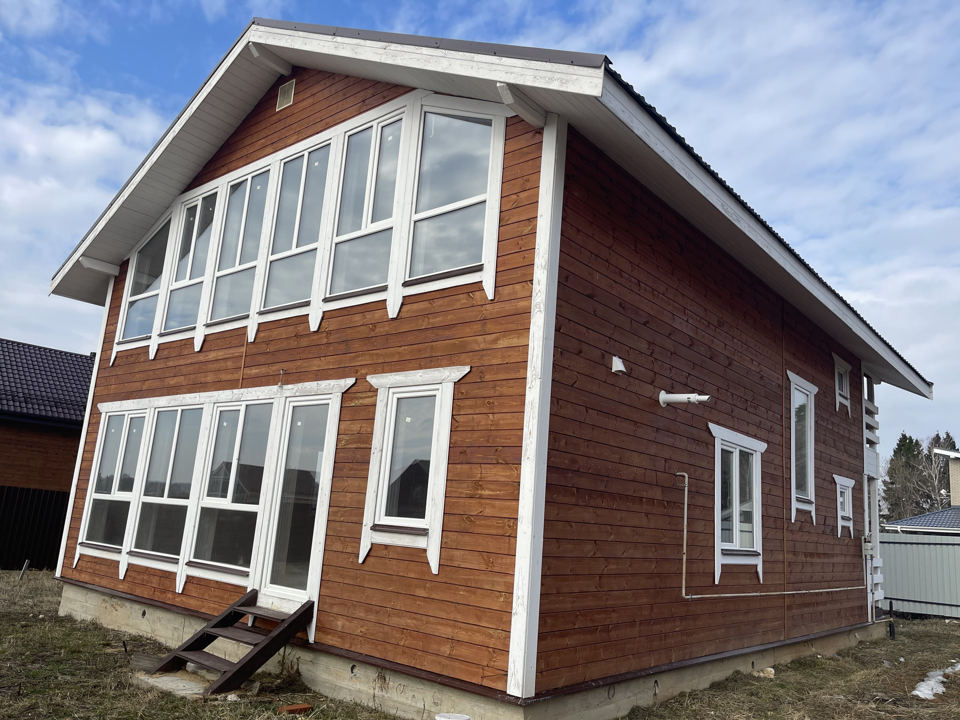 Дом двухэтажный. 1-этаж : терраса, холл, гостиная, сан. узел, кухня, жилая комната ,гардеробная ; 2-й этаж- три спальни холл, второй сан. узел . Дом утеплен и обшит имитацией бруса, готов для проживания зимой, в доме свет вода ( х/г) септик сан. техника, отопление. Фундамент монолитная плита,1 этаж плитка, теплый пол, кровля метало черепица с утеплением, пластиковые стеклопакеты с москитными сетками, теплая входная дверь, установлена сантехника. На полу- плитка, ламинат, в сан. узле- плитка. Фото реально продаваемого дома. дом к газовым сетям подключен.