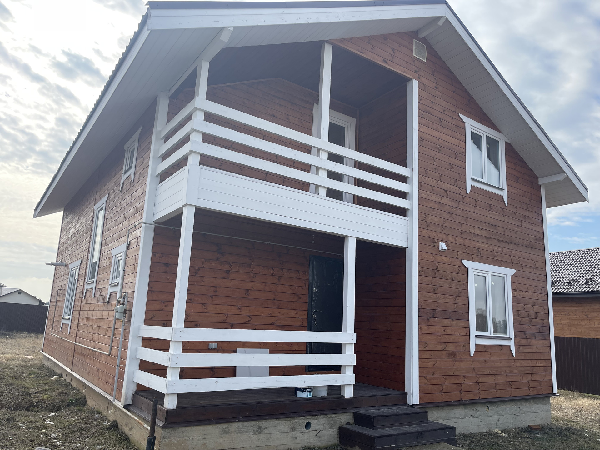 Дом из бруса новый. Дом построен из бруса 150 на 150 для круглогодичного проживания, с отделанный под ключ, расположен на обустроенном участке 12 соток, стоянка на два авто, отмостка- щебень, полностью забор по кругу из проф. настила.