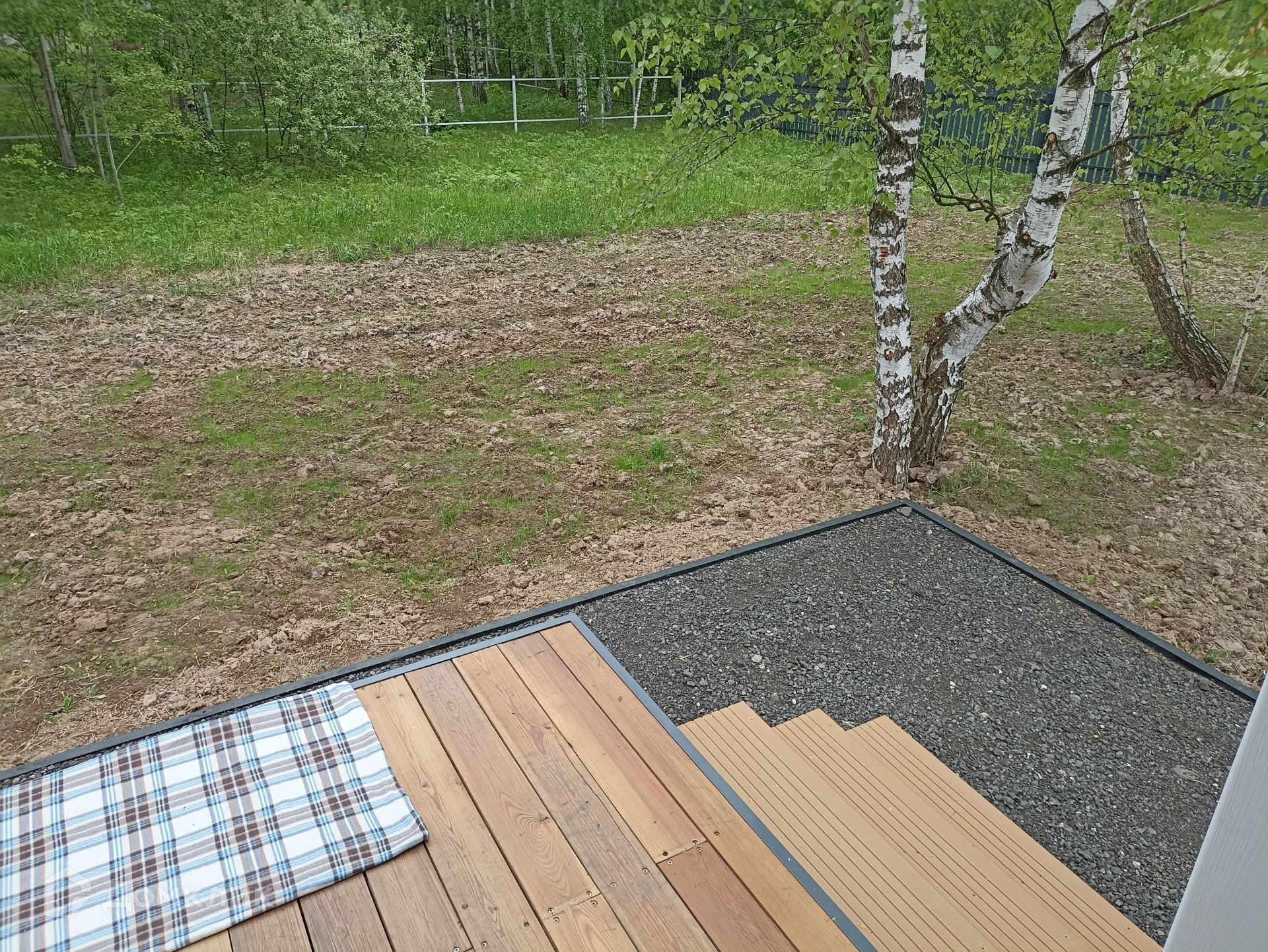 Из окон открывается просто волшебные виды! И на лиловые закаты и на лес. По грунту была произведена сложная земле подготовка: срезан корневой пласт, выровнена плоскость с плавным понижением в сторону леса, грунт отфрезерован.