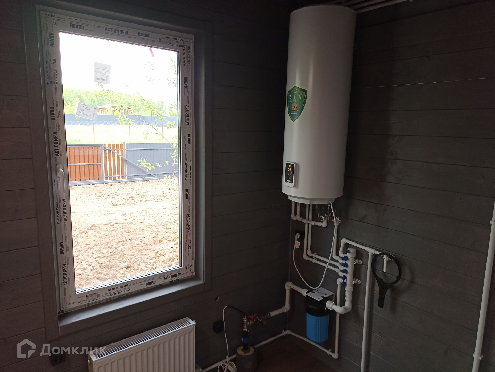 Котельная оборудована бойлером на 85 л и подготовлена для установки газового котла. Ввод воды в дом оборудован греющим кабелем что гарантирует защиту системы от замерзания в зимнее время года.