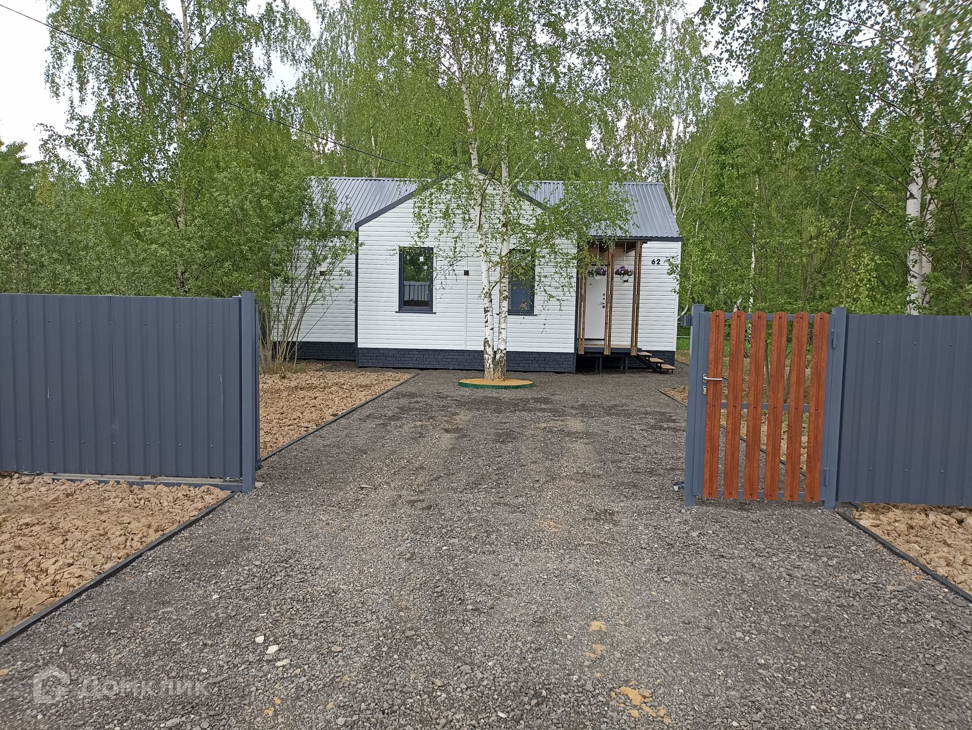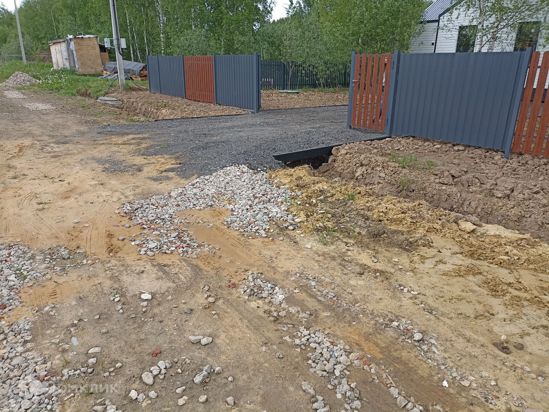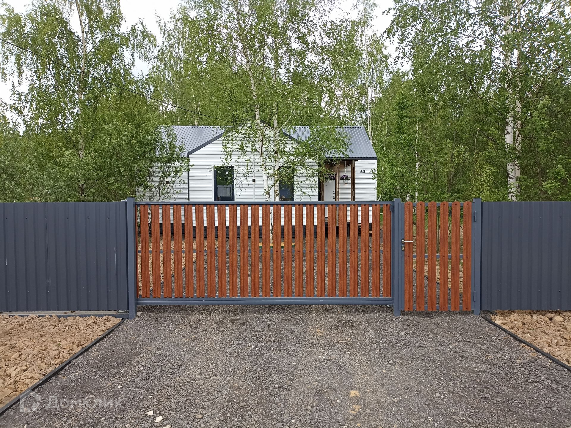 По границе участка установлен современный стильный забор, калитка и откатные ворота.