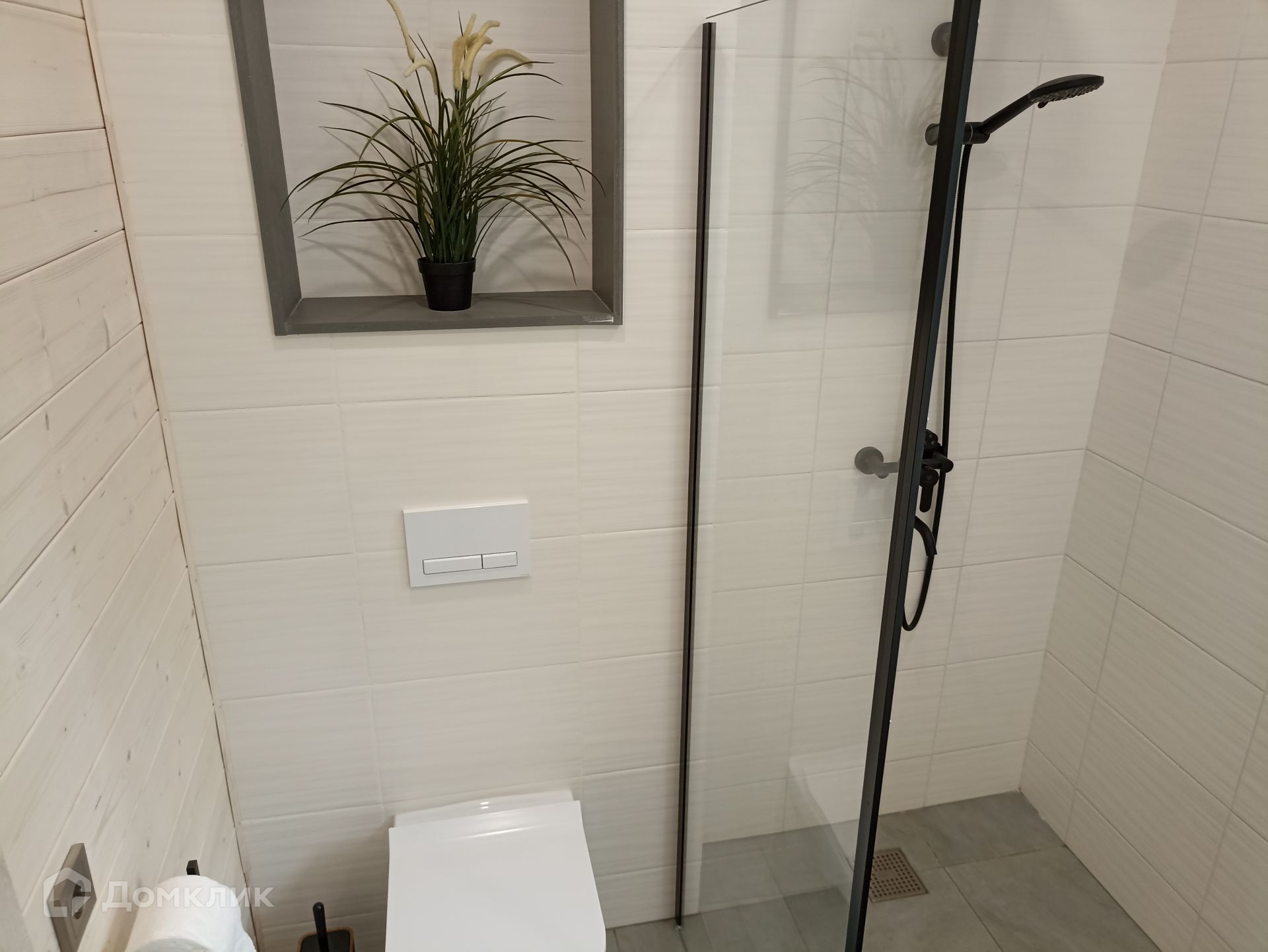 В санузле предусмотрен теплый пол и душевой поддон с понижением уровня очень удобно, никаких порожков.