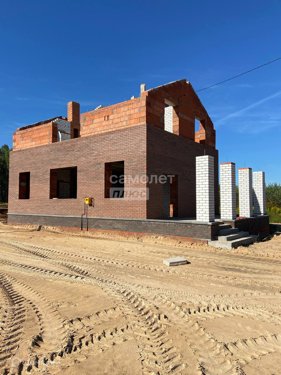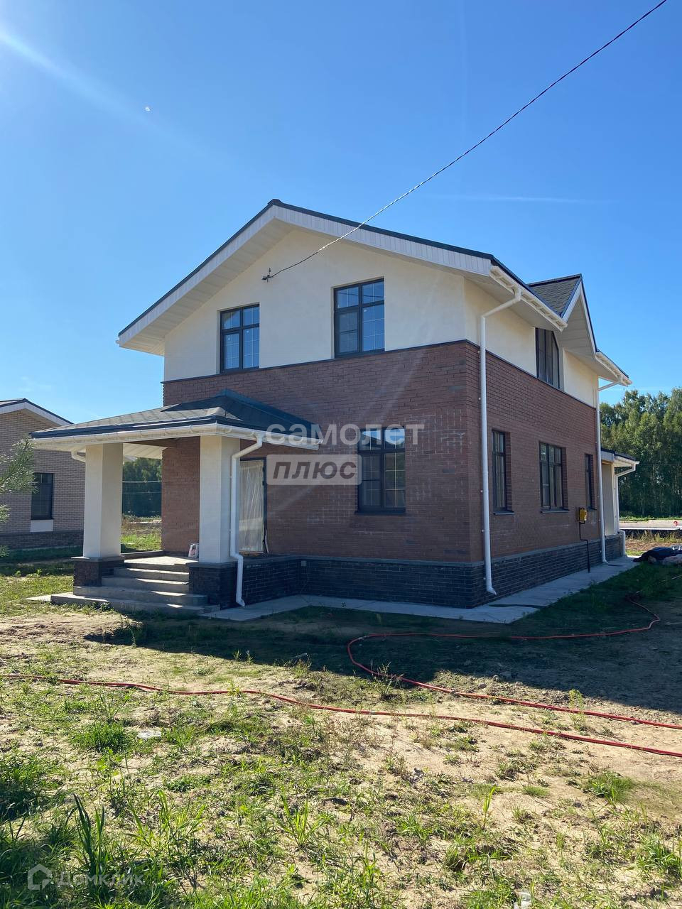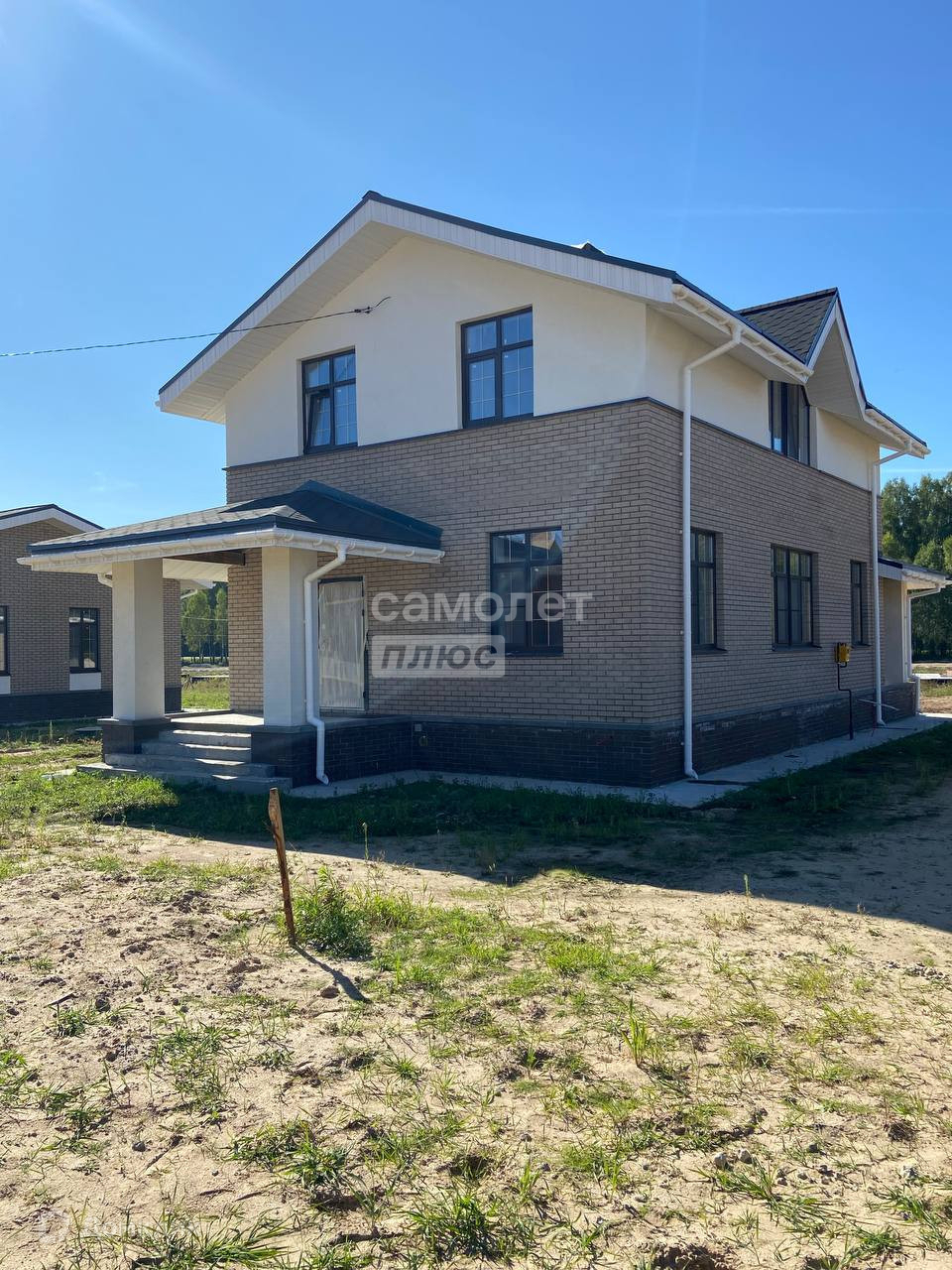 Дом сдается в предчистовой отделке: штукатурка стен, откосов, сухая стяжка пола, теплый пол по периметру дома, вся разводка инженерных коммуникаций заведена в дом, водостоки, отмостка.