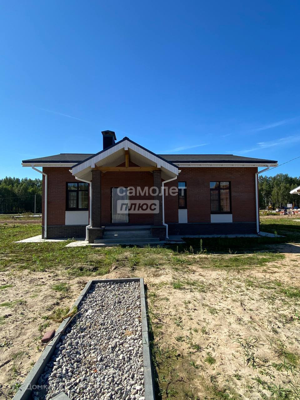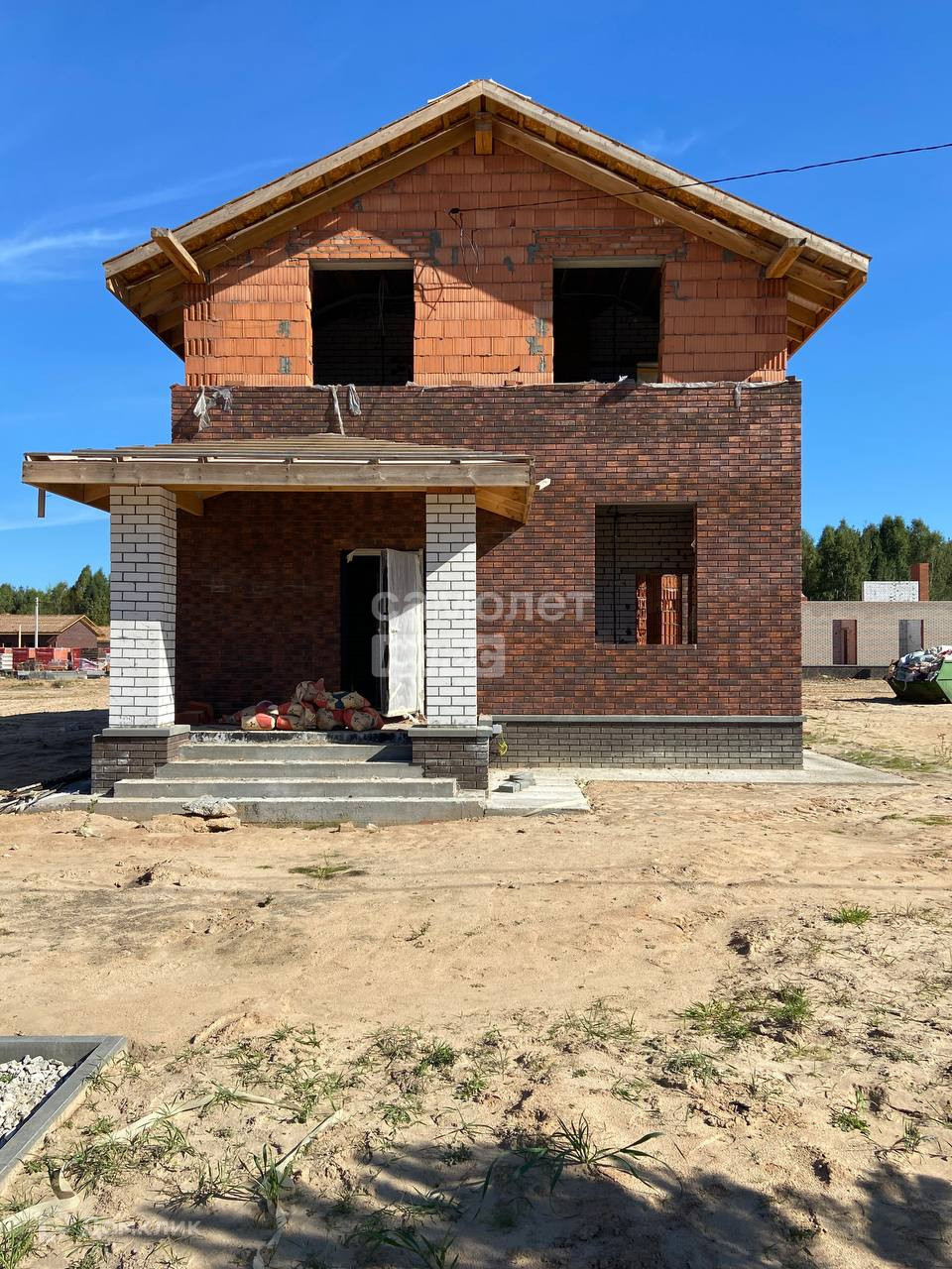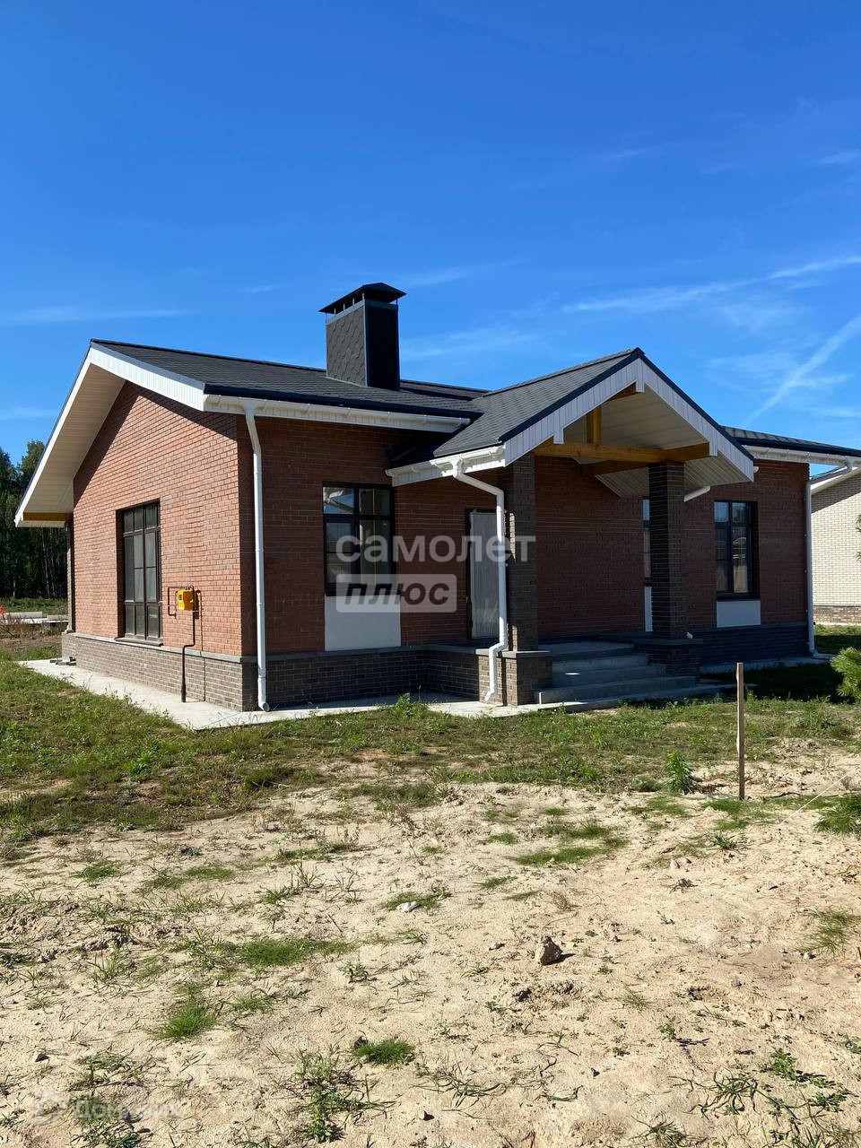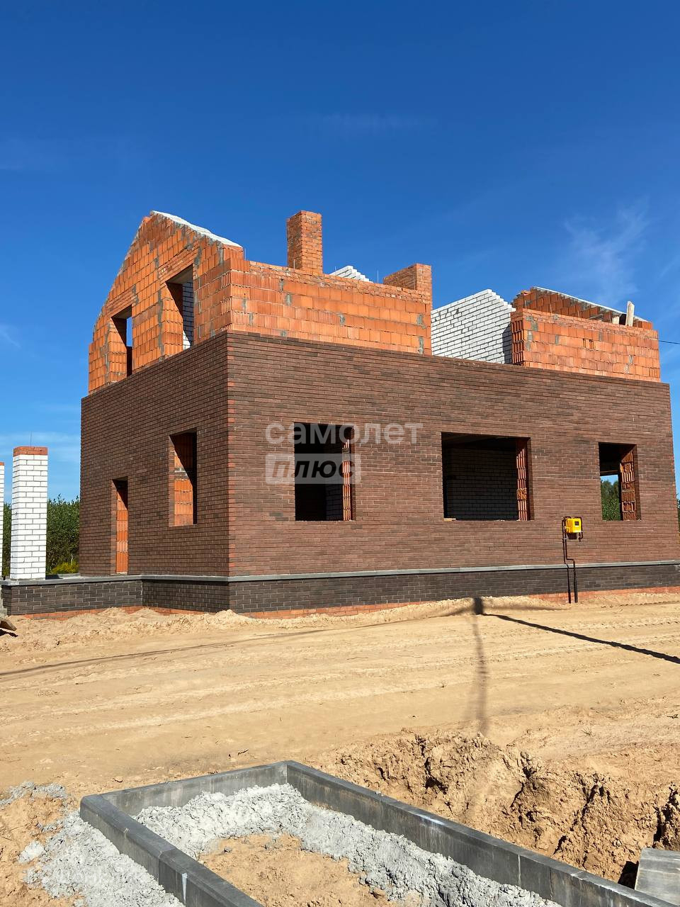 Дом сдается в предчистовой отделке: штукатурка стен, откосов, сухая стяжка пола, теплый пол по периметру дома, вся разводка инженерных коммуникаций заведена в дом, водостоки, отмостка.