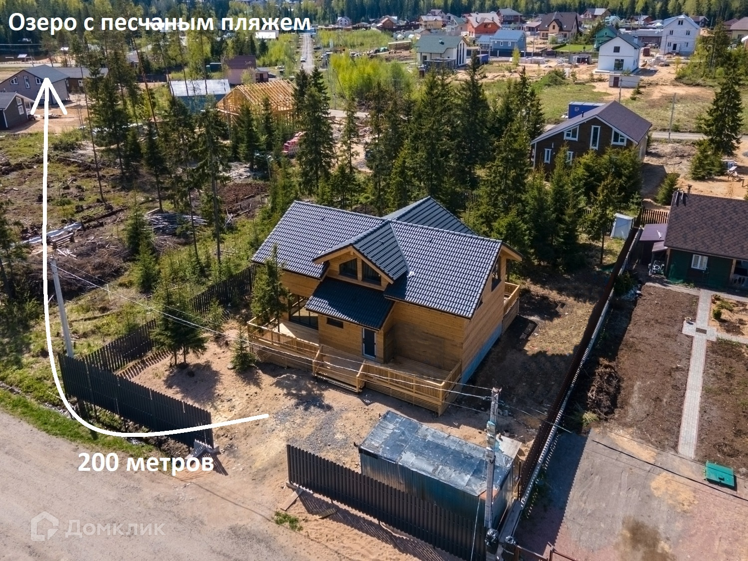 В поселке только для своих жителей благоустроено озеро с песчаным пляжем, есть магазин и кафе.