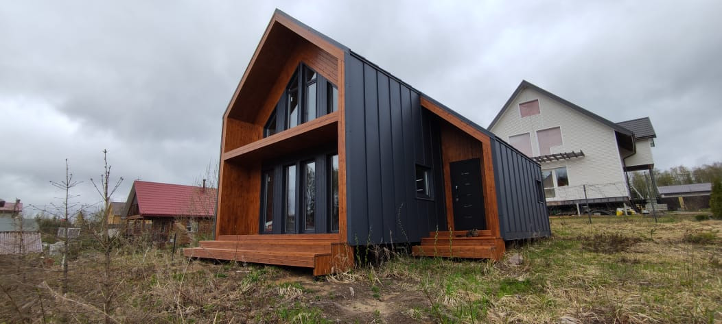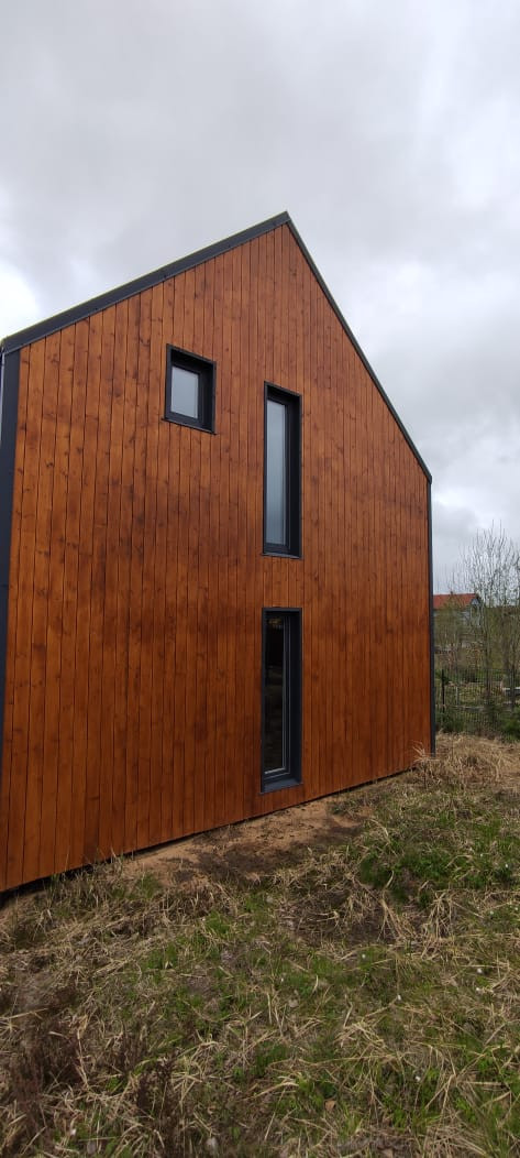 Дом построен по индивидуальному проекту в стиле барнхаус.
