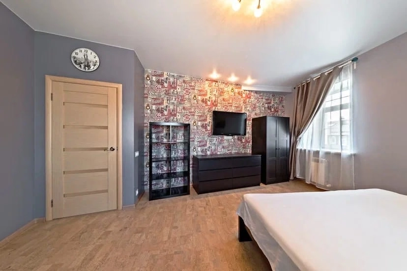 3 этажа, 5 спален, 3 санузла и сауна.