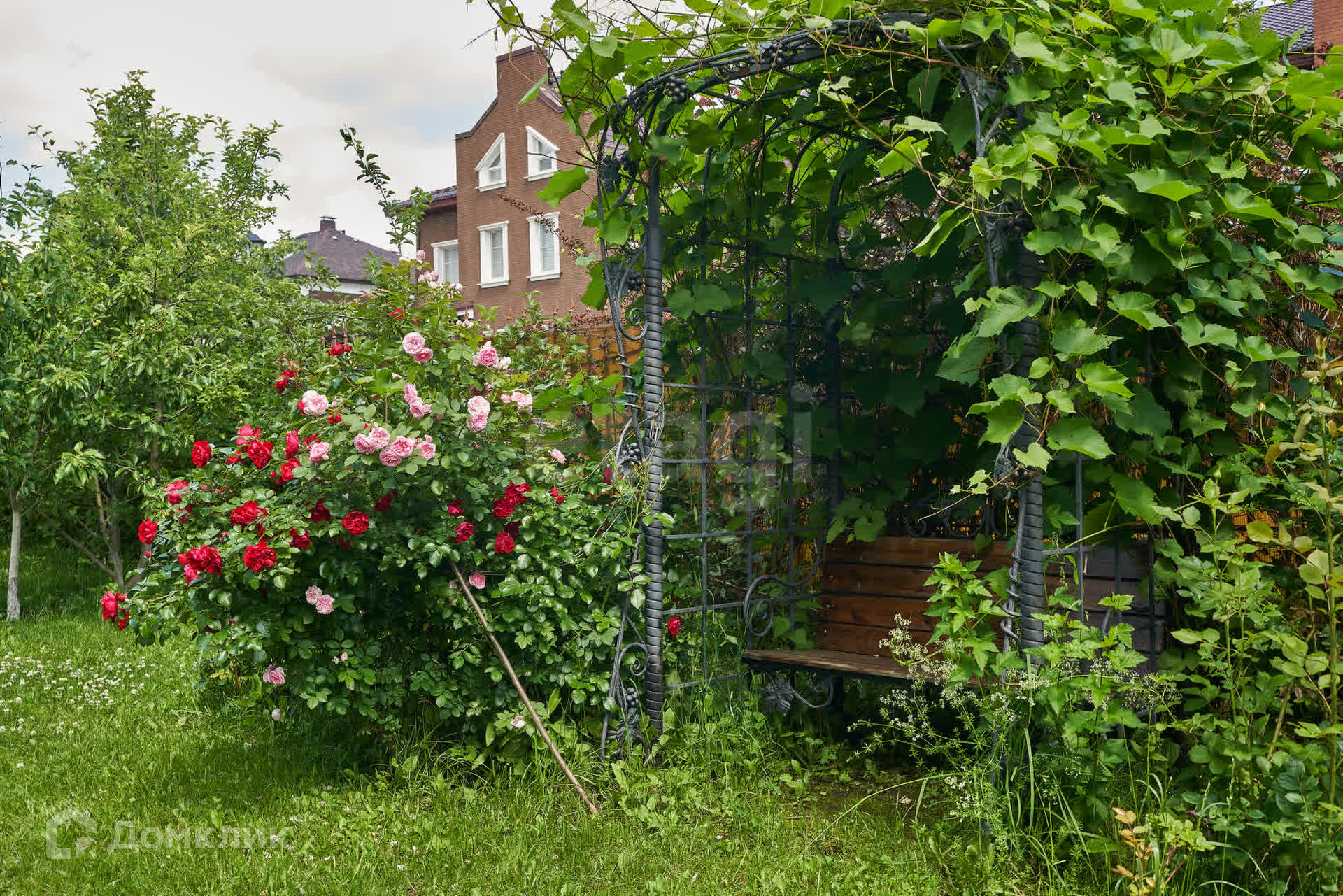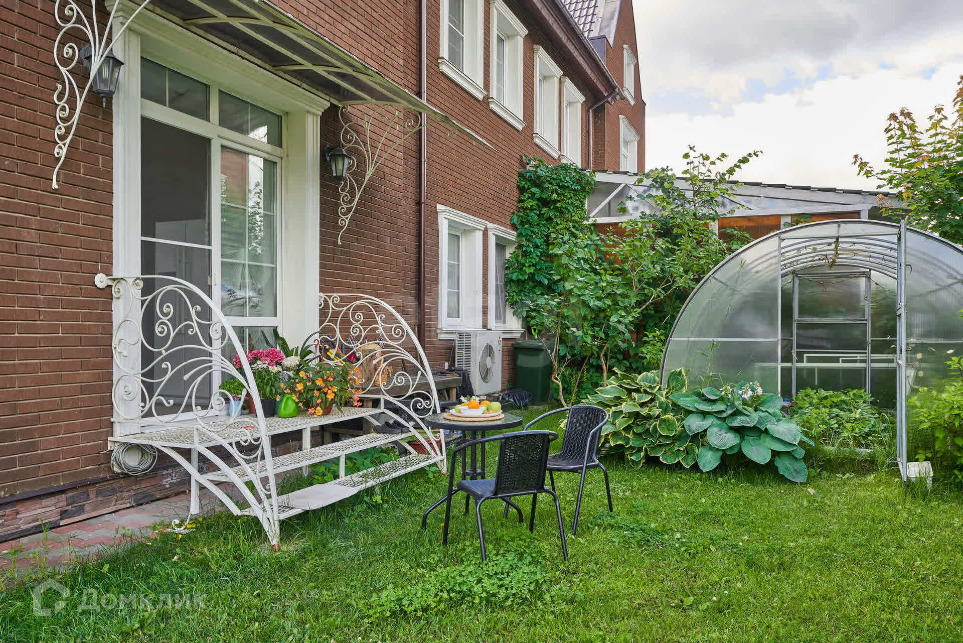 Из гостиной есть выход на участок площадью 3 сотки, который огорожен кованным забором.