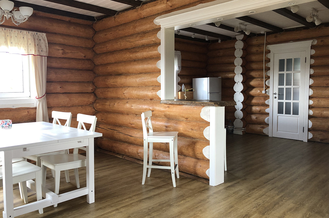 Дом построен из качественного бревна, на свайном фундаменте, утеплённом по всему периметру пенплексом 100 мм.