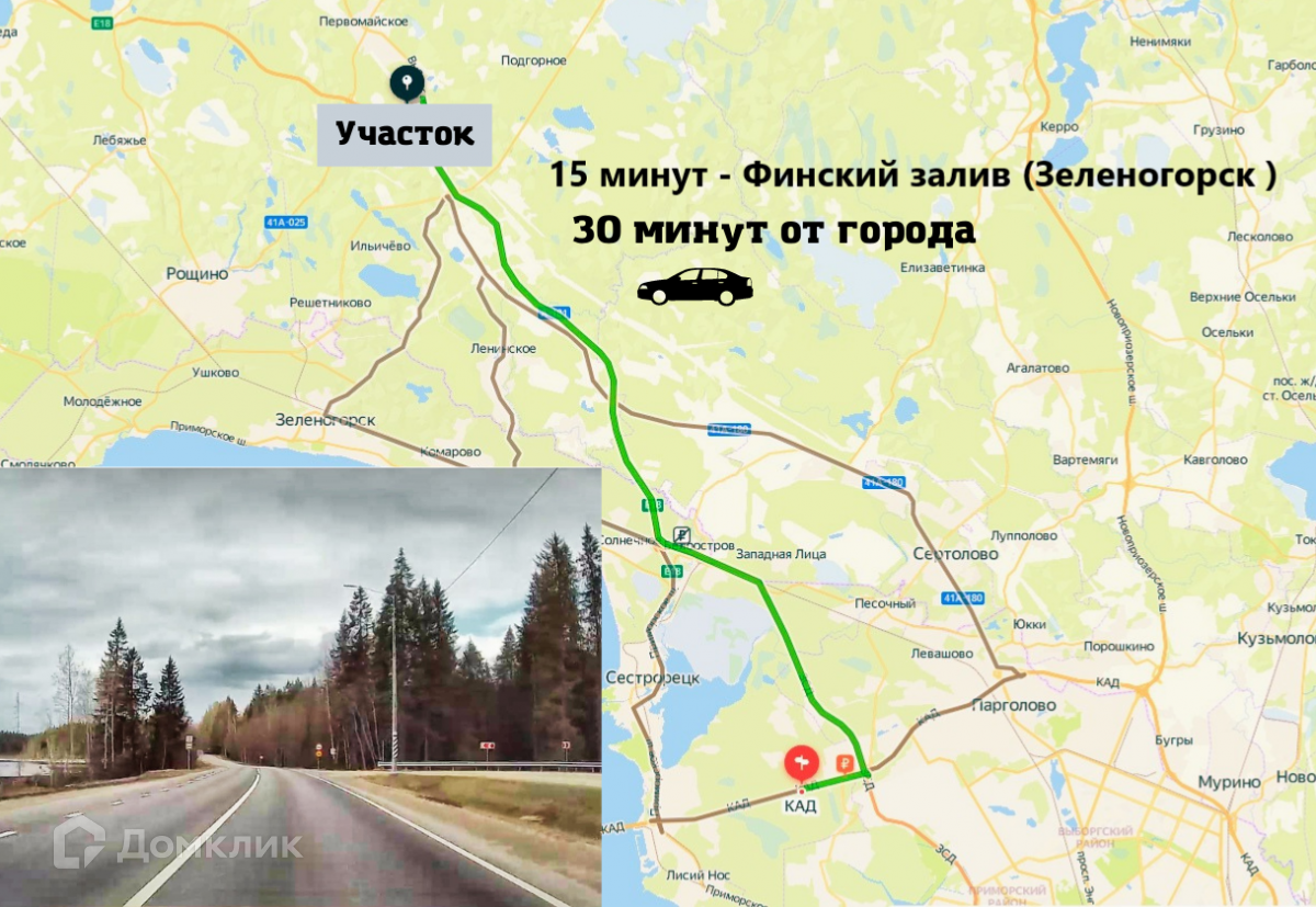 Отличное место, в окружении хвойного леса, охраняемая территория, шлагбаум с пультом, солидные соседи, дороги чистят зимой, отличная асфальтная дорога до самого участка. Посёлок Первомайское, где имеется больница, школа, детский сад, магазины, находится на расстоянии 5 км, или 10 минут езды. До Зеленогорска 15 минут на авто. Не далеко, озера для рыбалки и купания.