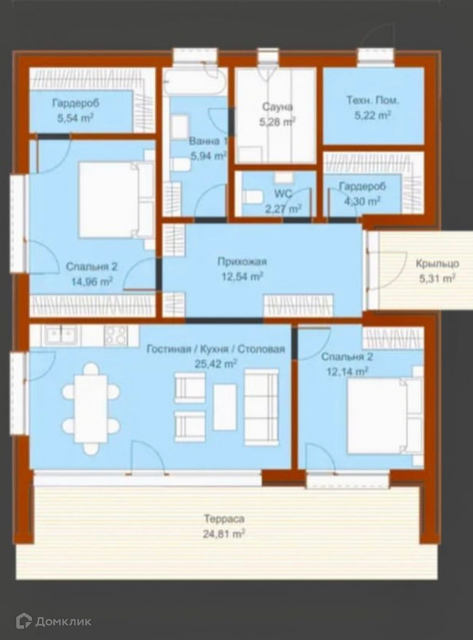 Общая площадь 126 м2