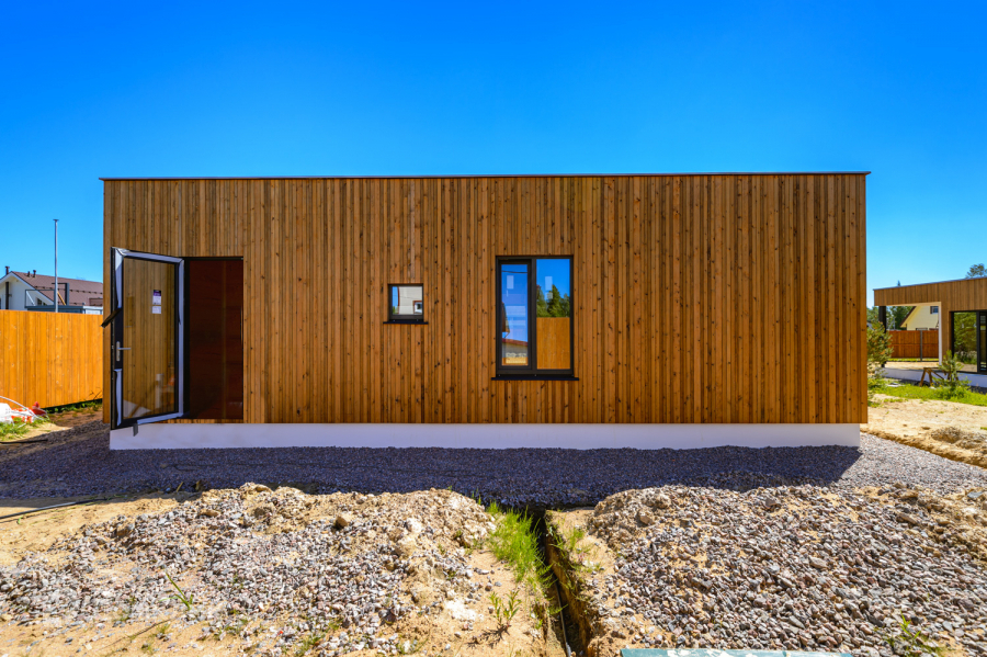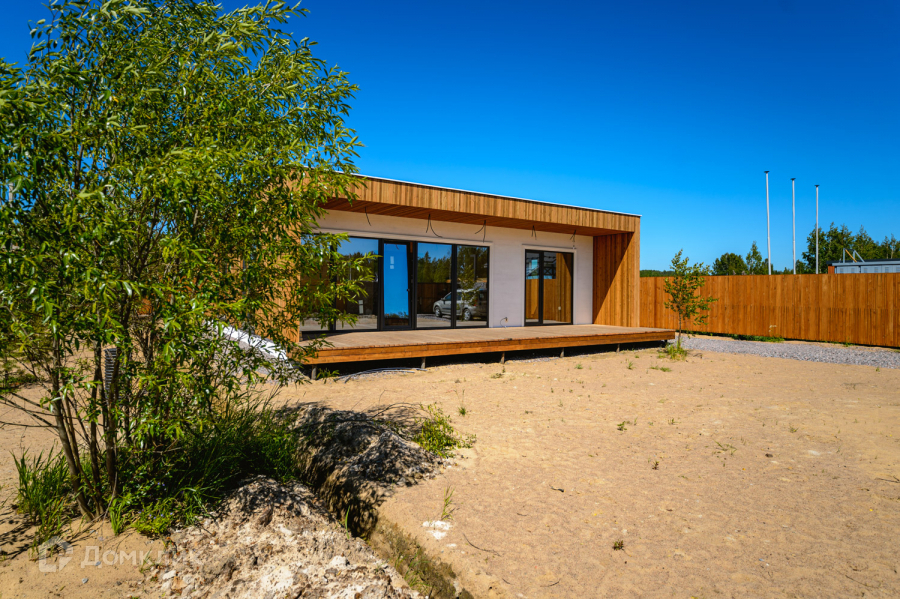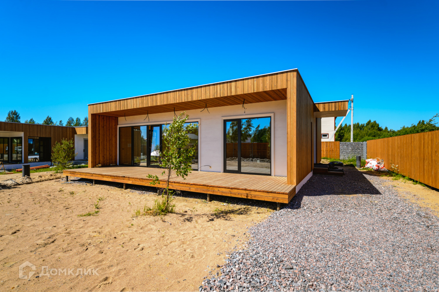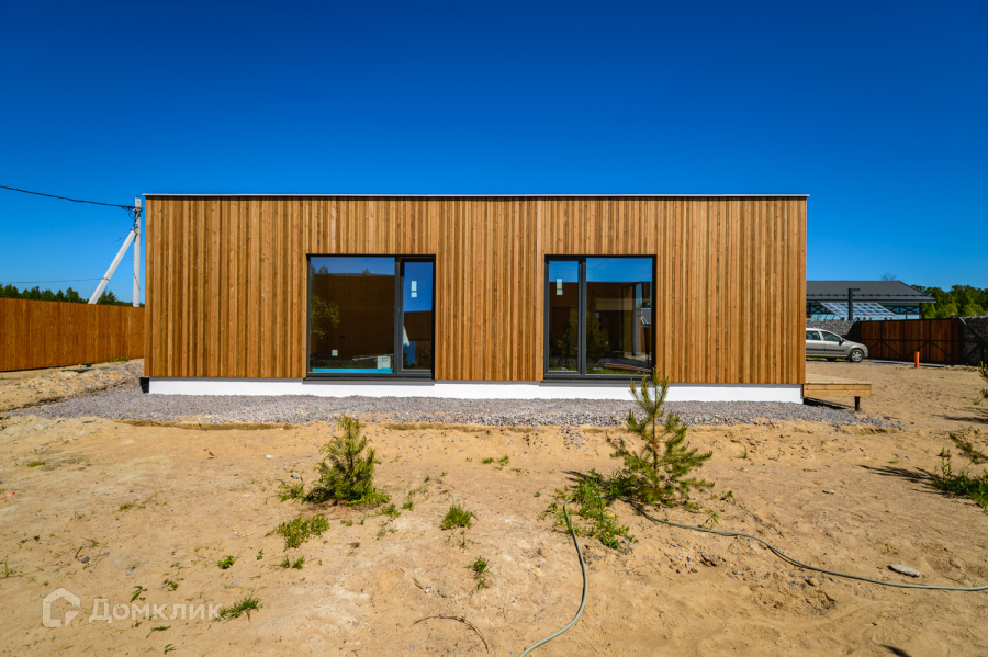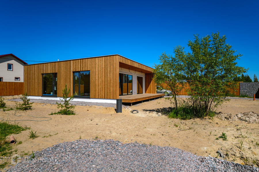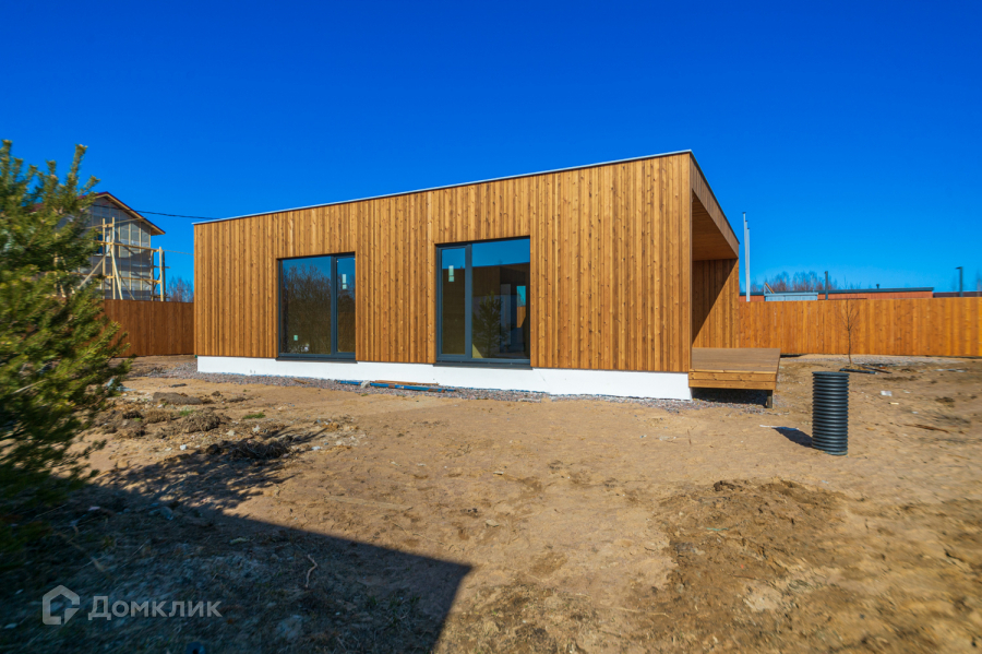 Одноэтажный энергоэффективный дом 126 м2. с плоской крышей и панорамным остеклением. Дом на завершающей стадии строительства, до конца июня будет готов.