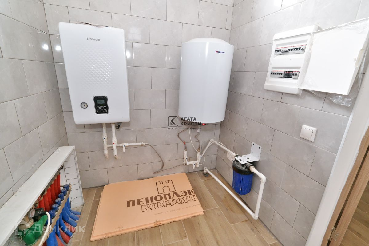 КОММУНИКАЦИИ: Электроэнергия подключена 15 кВт, водоснабжение - своя артезианская скважина (сделан кессон и погружной насос - никакого шума и вибраций в доме), канализация - септик. Отапливается дом электрокотлом. Теплый пол - экономия средств на отоплении и места.