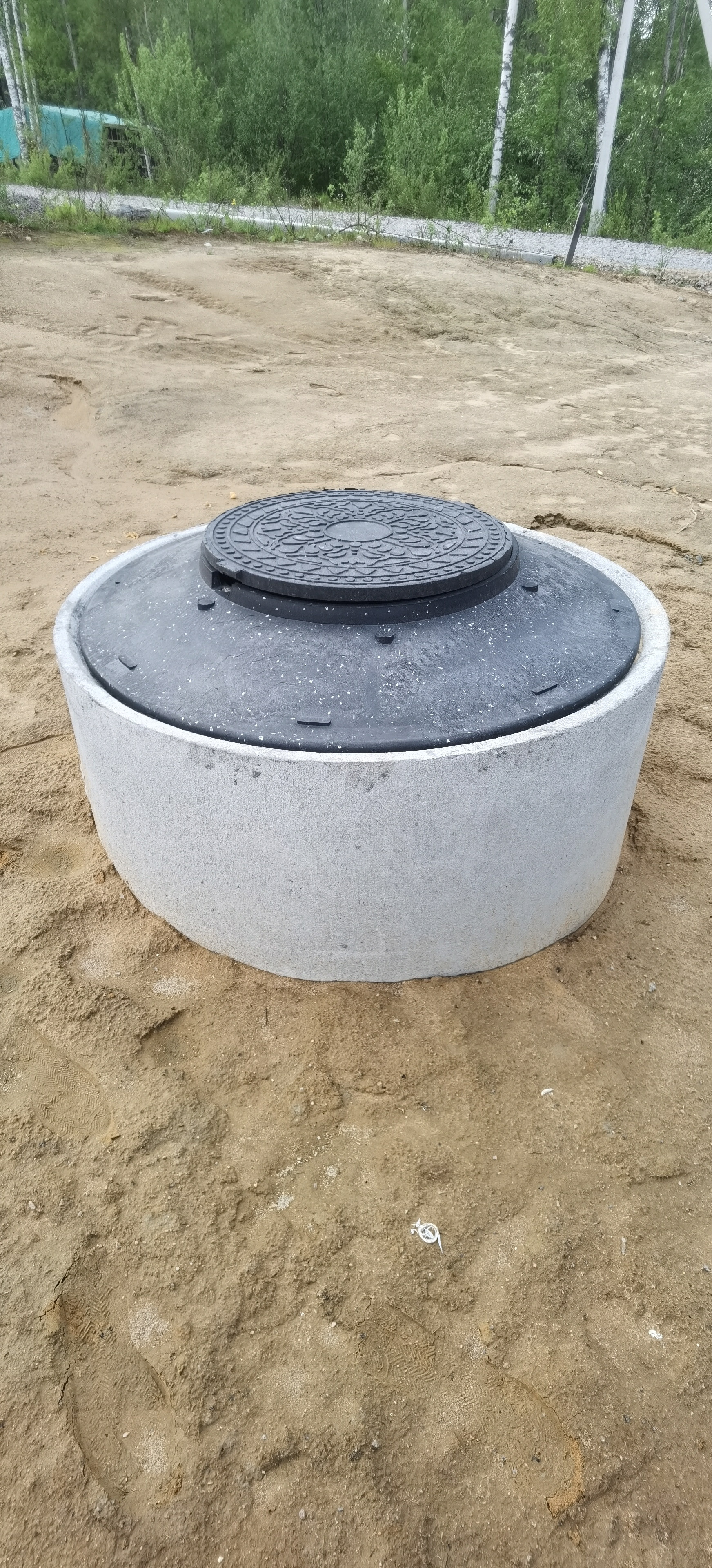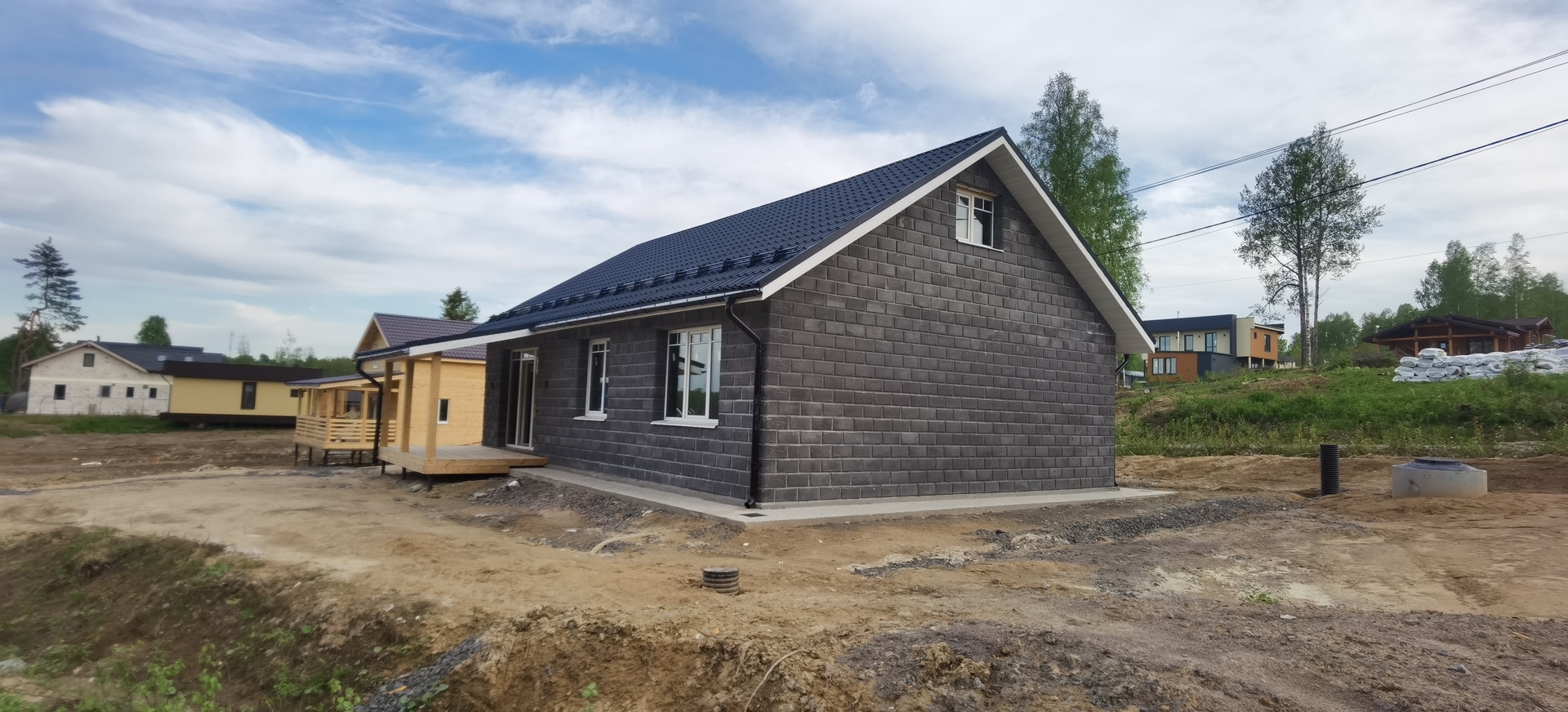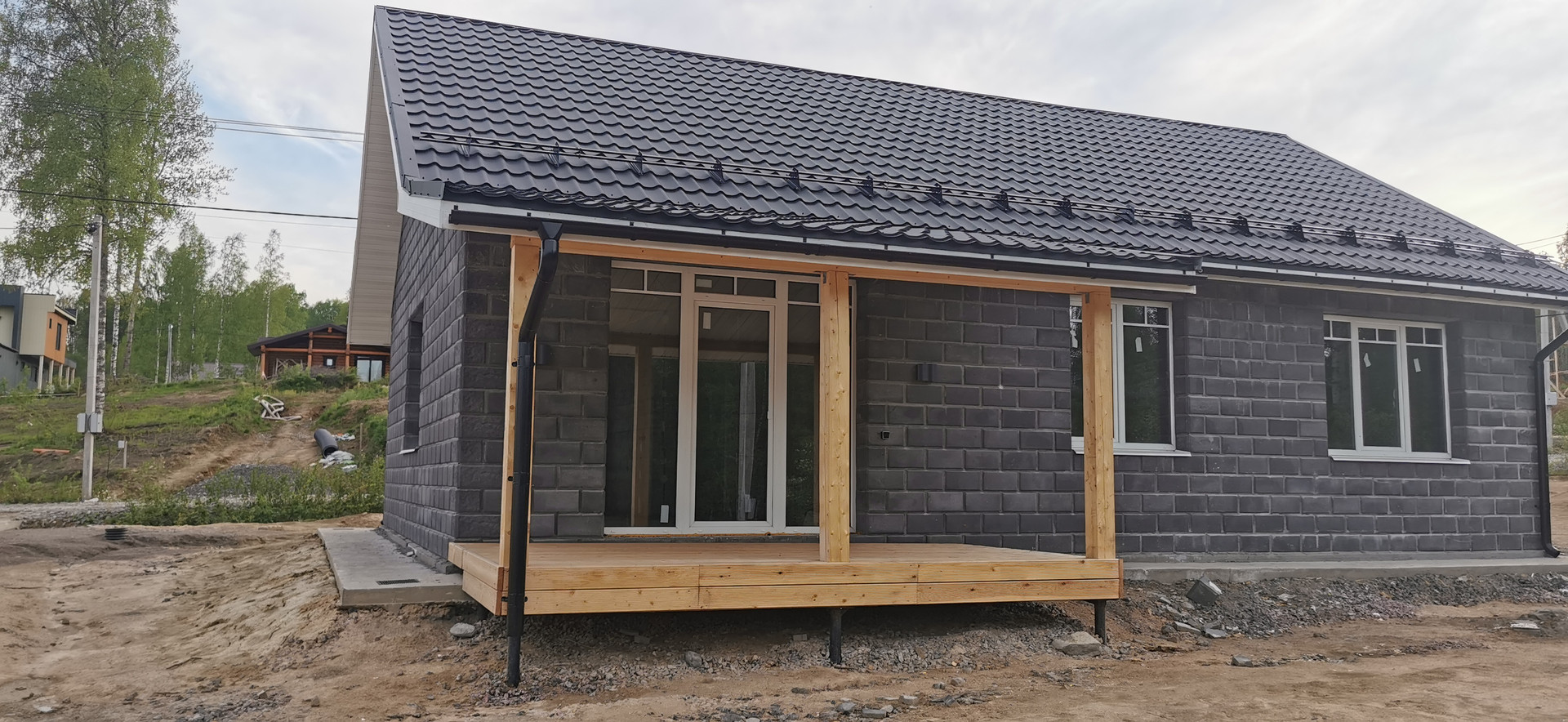 Дренажная система вокруг участка (поэтому участок сухой, есть небольшой уклон, с террасы прекрасный вид на лес