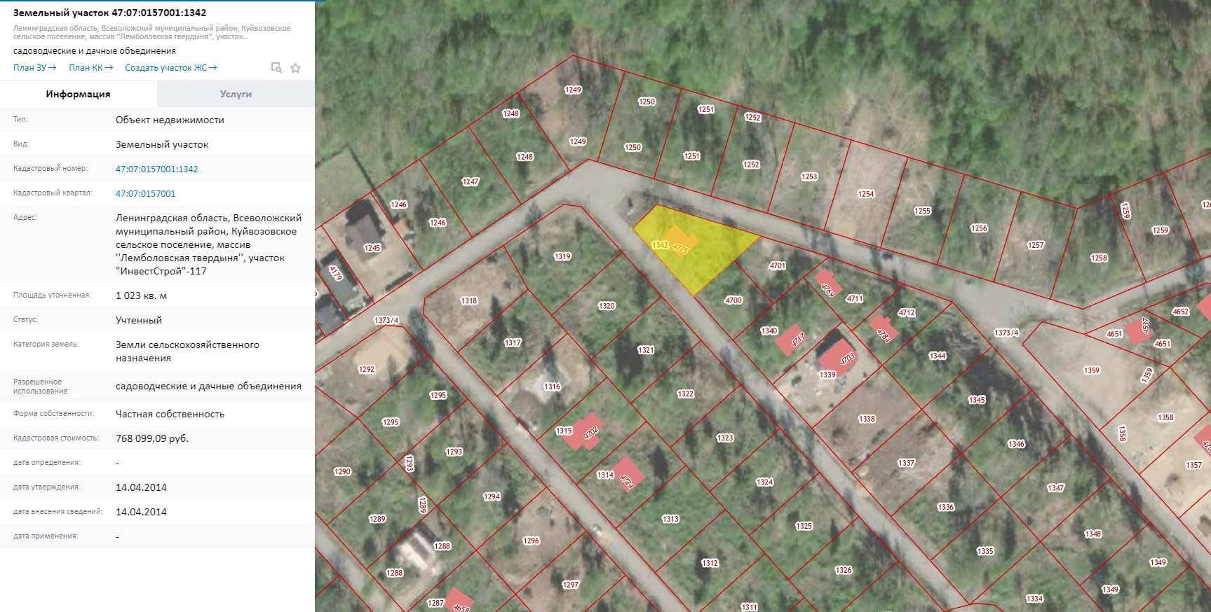 Кадастровый номер участка 47:07:0157001:1342
