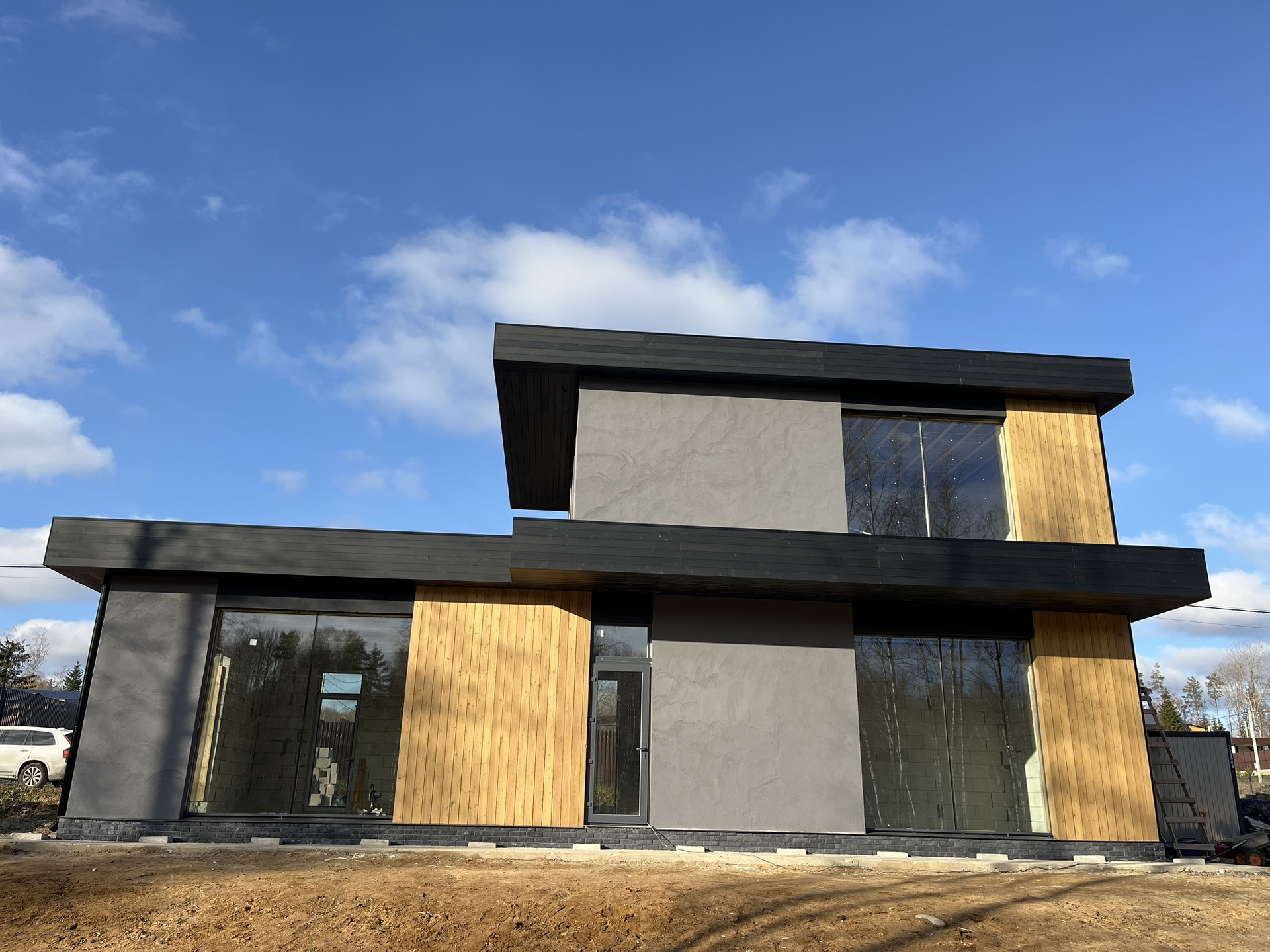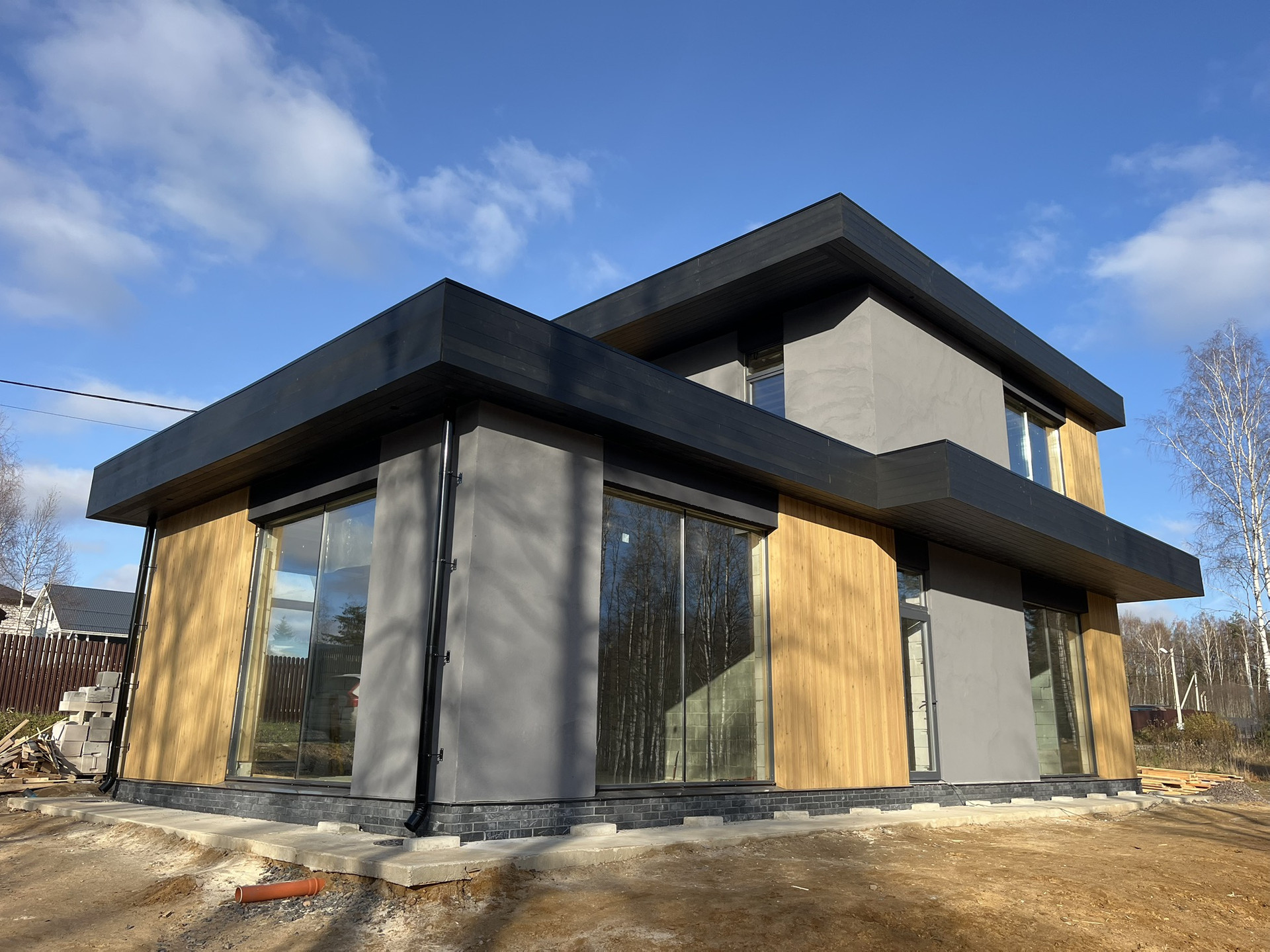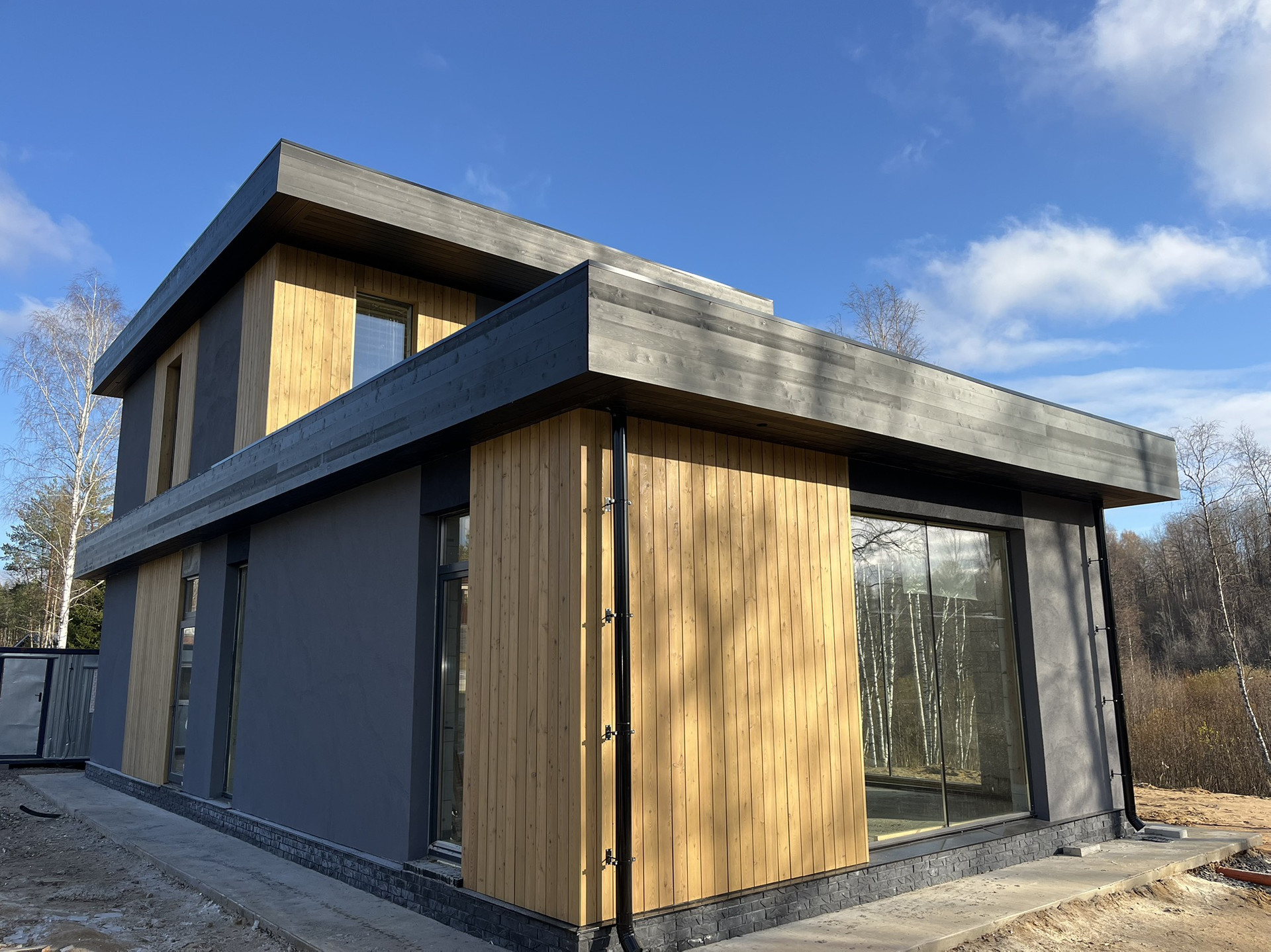 Коттедж 160 м в современном стиле. Отделка лиственница, камень.