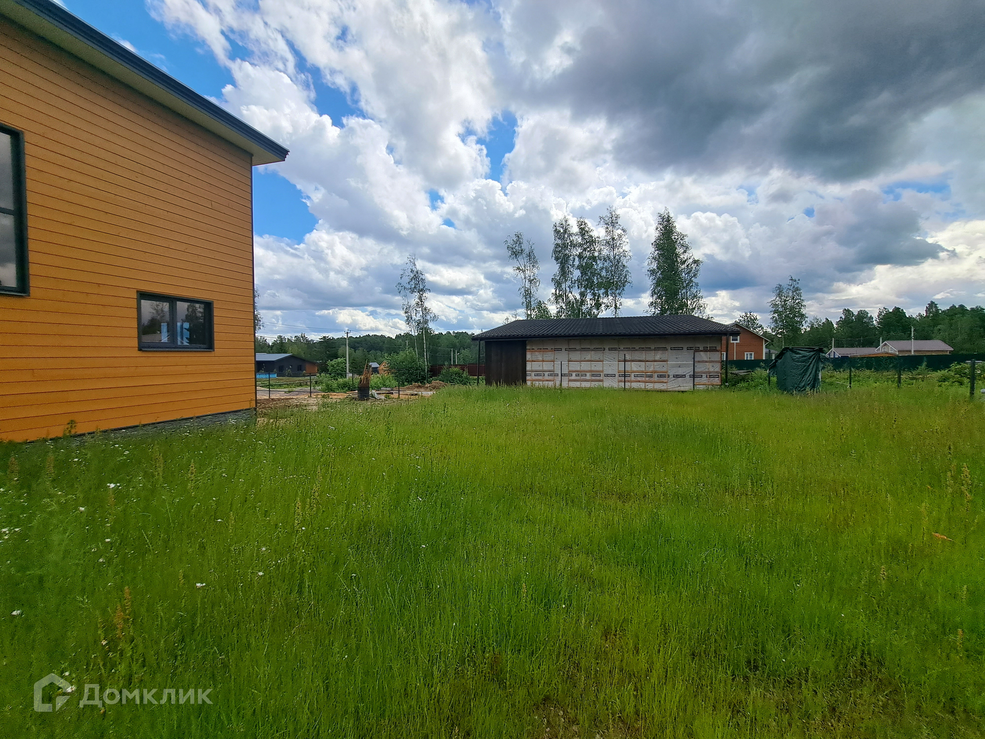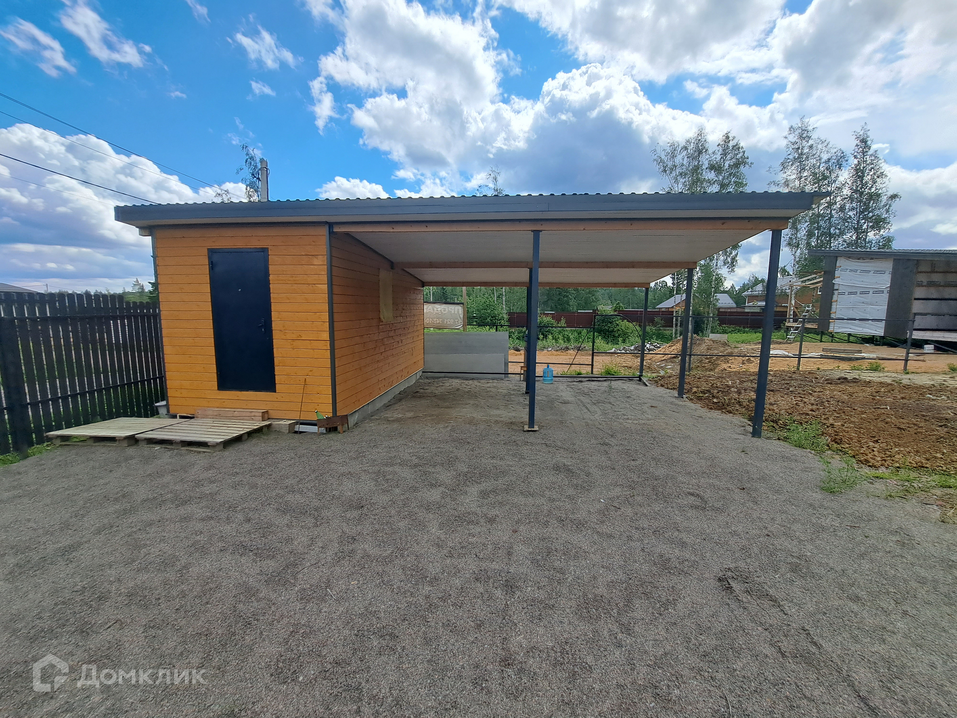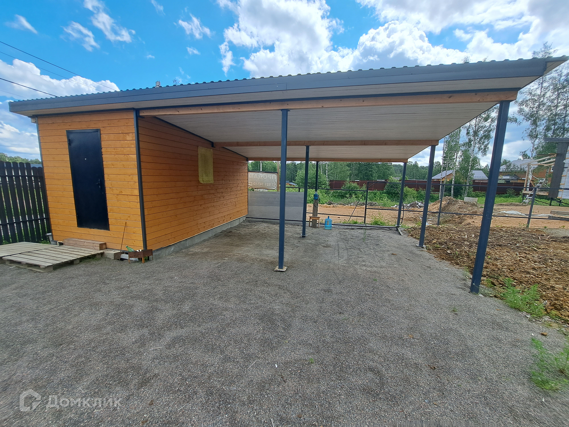 Дополнительно на участке построен хозблок с навесом для двух машин ( по каркасной технологии, утеплён и обшит имитацией бруса в стиле дома).