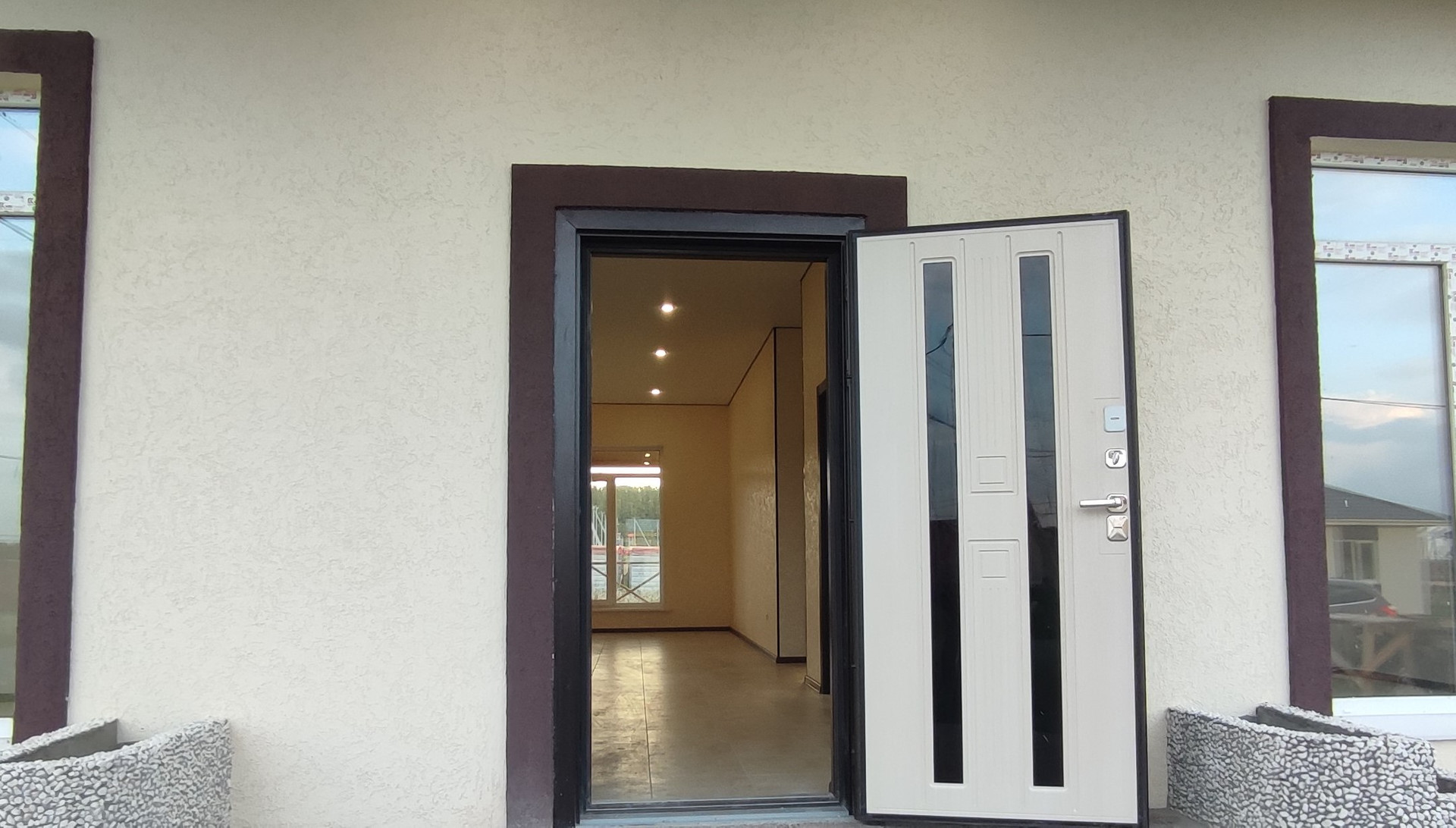 Скважина 85 метров (артезианская вода), септик 5 кубов, горячая и холодная вода подключены к коммуникациям дома. Отделка под ключ, использованы современные качественные материалы: натяжные потолки, ламинат, пластиковые окна увеличенного размера, на входе стальная сейф-дверь.