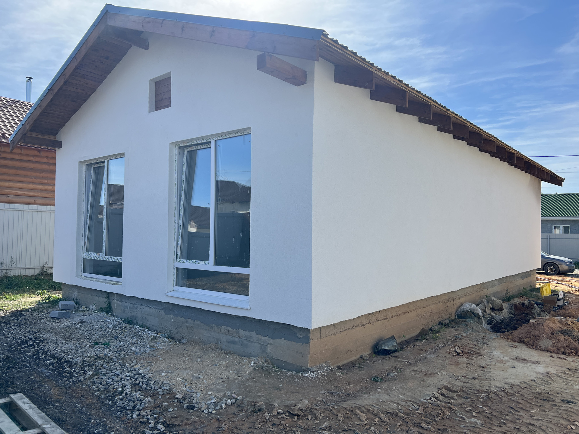 Фасад - декоративная штукатурка и краска, утепление 100мм минеральной эковаты.