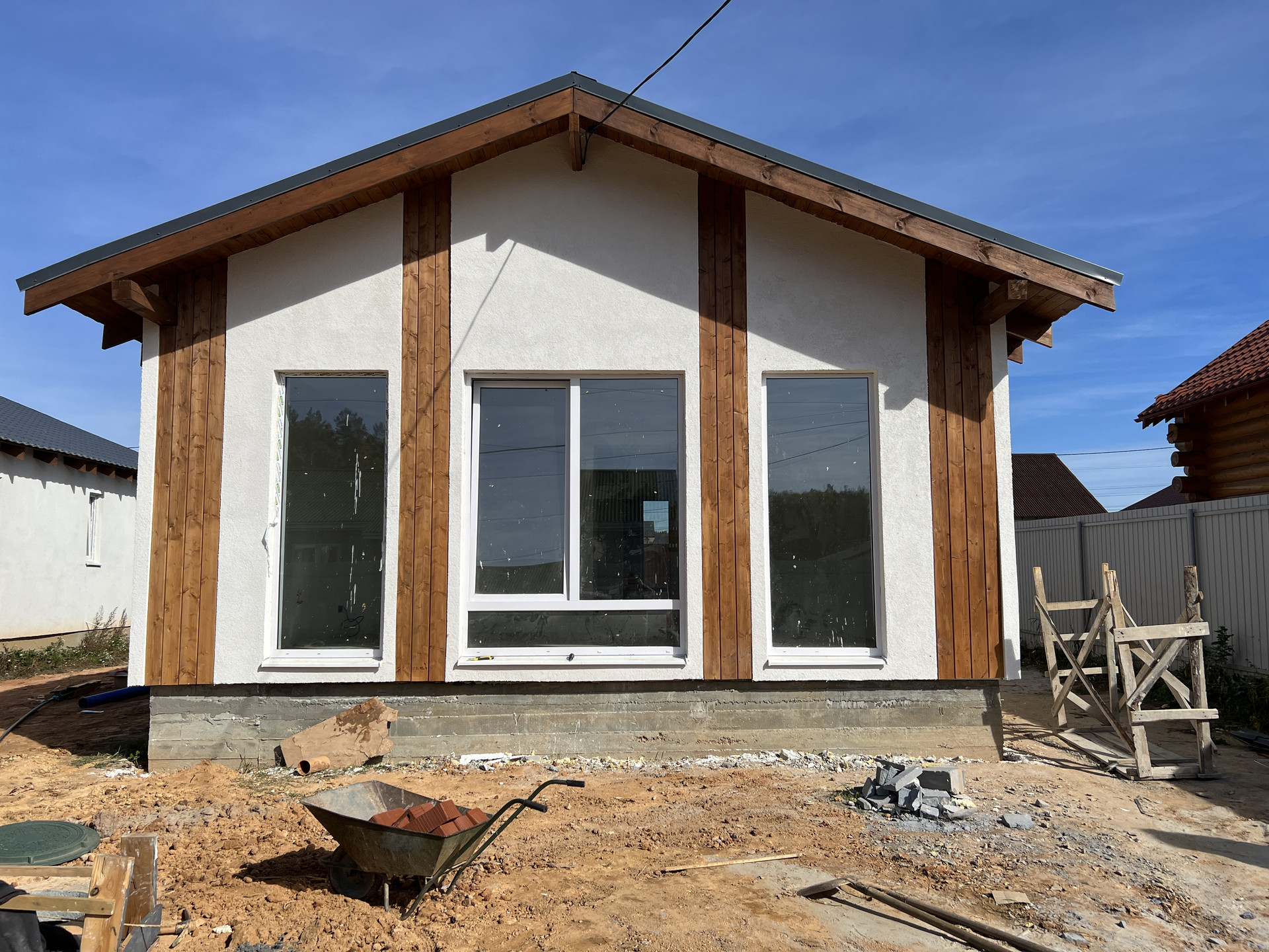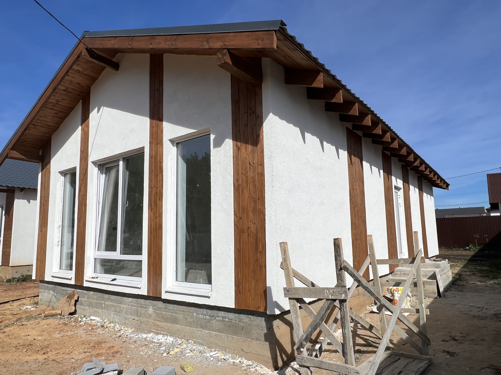 Отделка фасада с элементами дерева