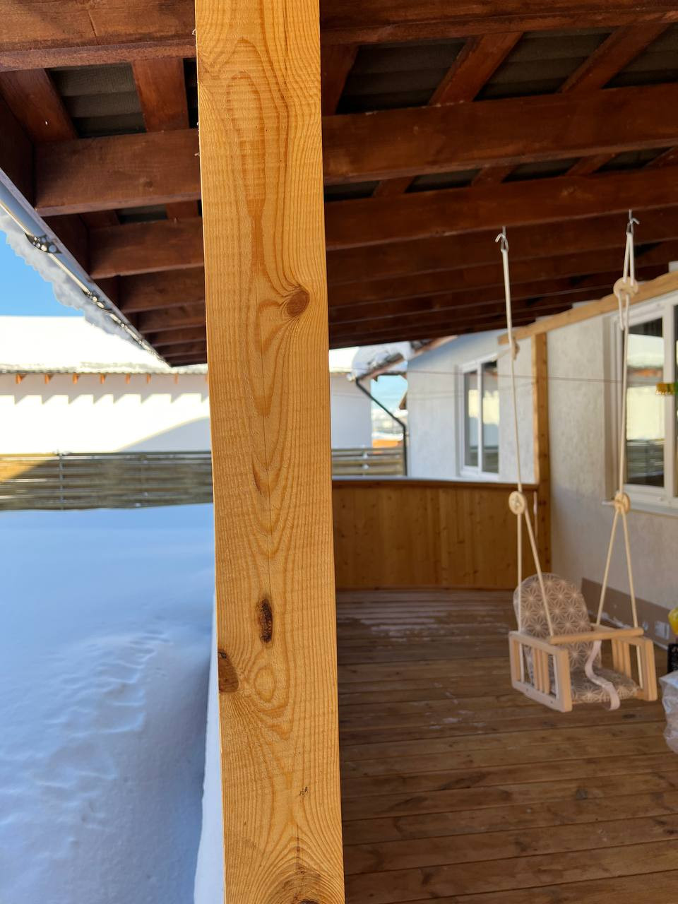 Большая крытая терраса: где можно отлично проводить время с чашечкой чая или кофе, любоваться на лес, слушать листву деревьев и пение птиц. Так же укрыться от солнца или осадков, посидеть в дружной компании.