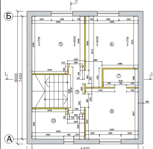 - перекрытия между первым и вторым бетонные
